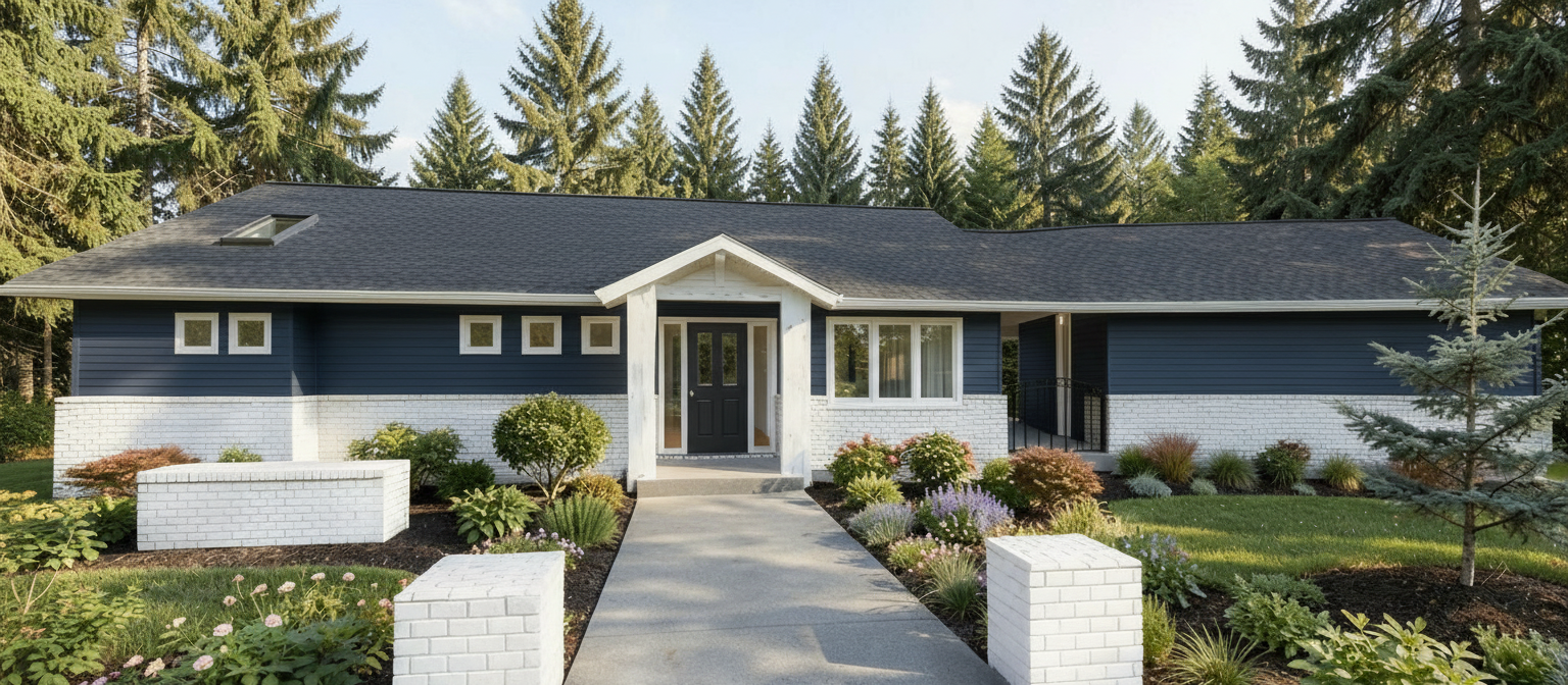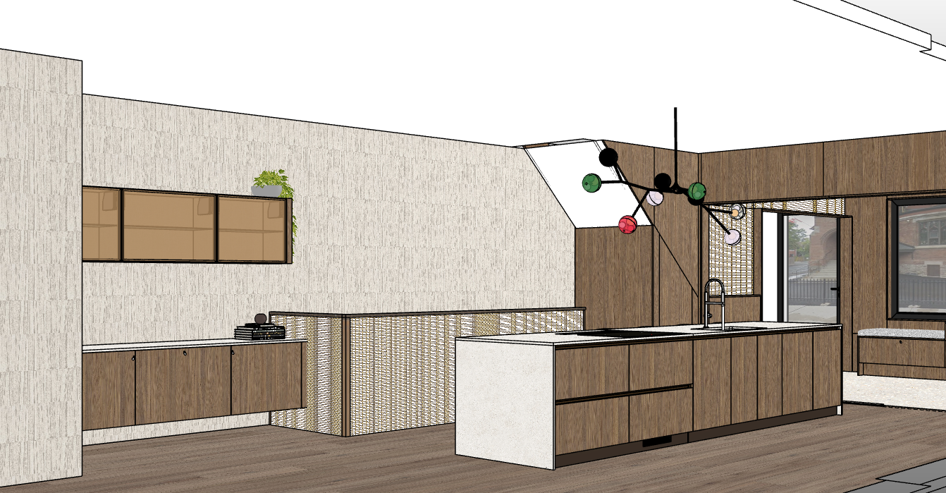 keep original finishes add pot lights on the ceiling the railing is a bronzed metal micro mesh do not add extra decorative objects