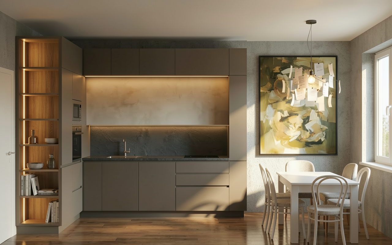 add two white downlights above kitchen light more led stripe above worktop add more daylight from window