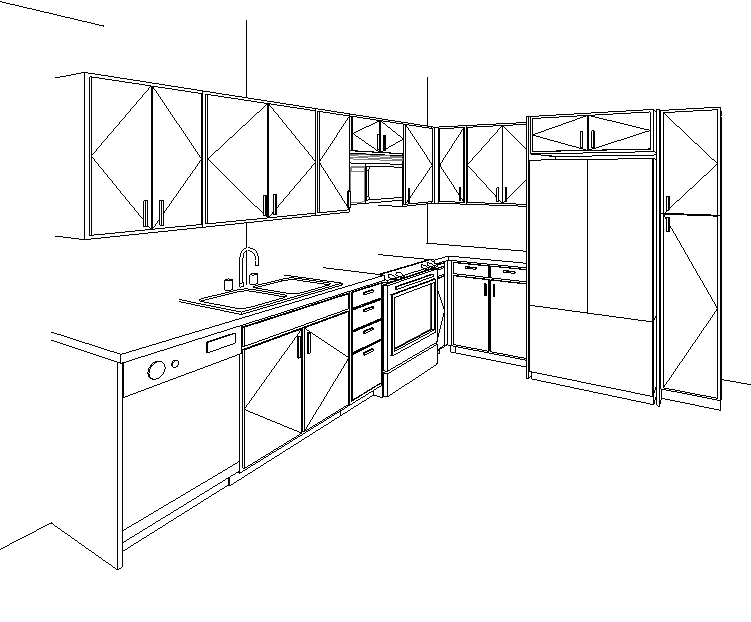 interior shot keep the kitchen layout exactly the same just add materials and make it look realistic