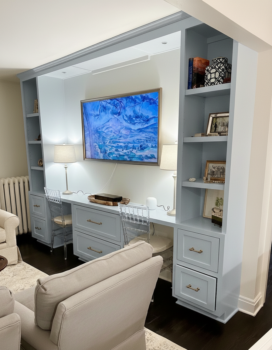 render photorealistic keep all finishes and structure as is make ceiling a drywall ceiling with recessed cans view outside to be field with mountains in far off distance