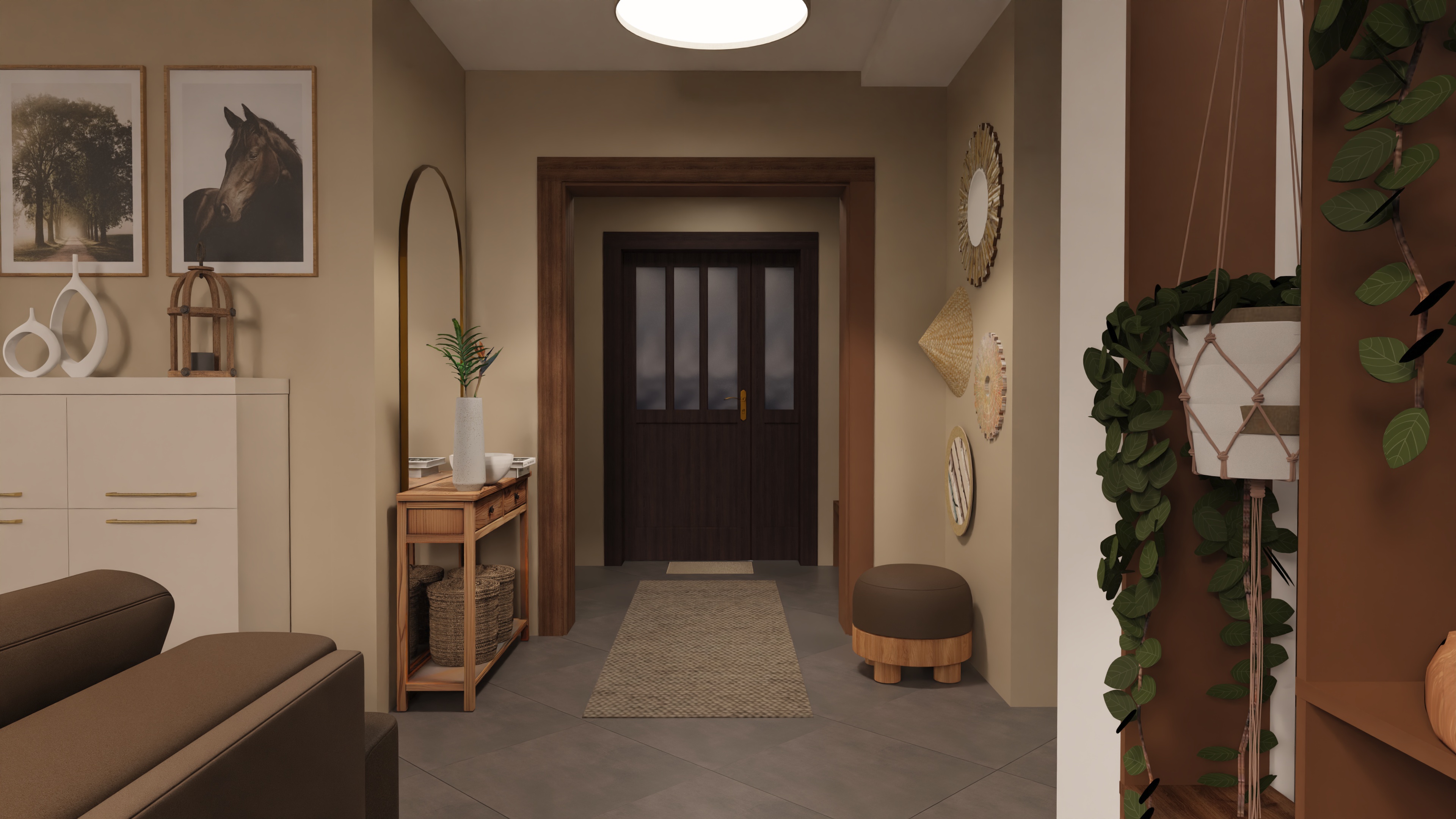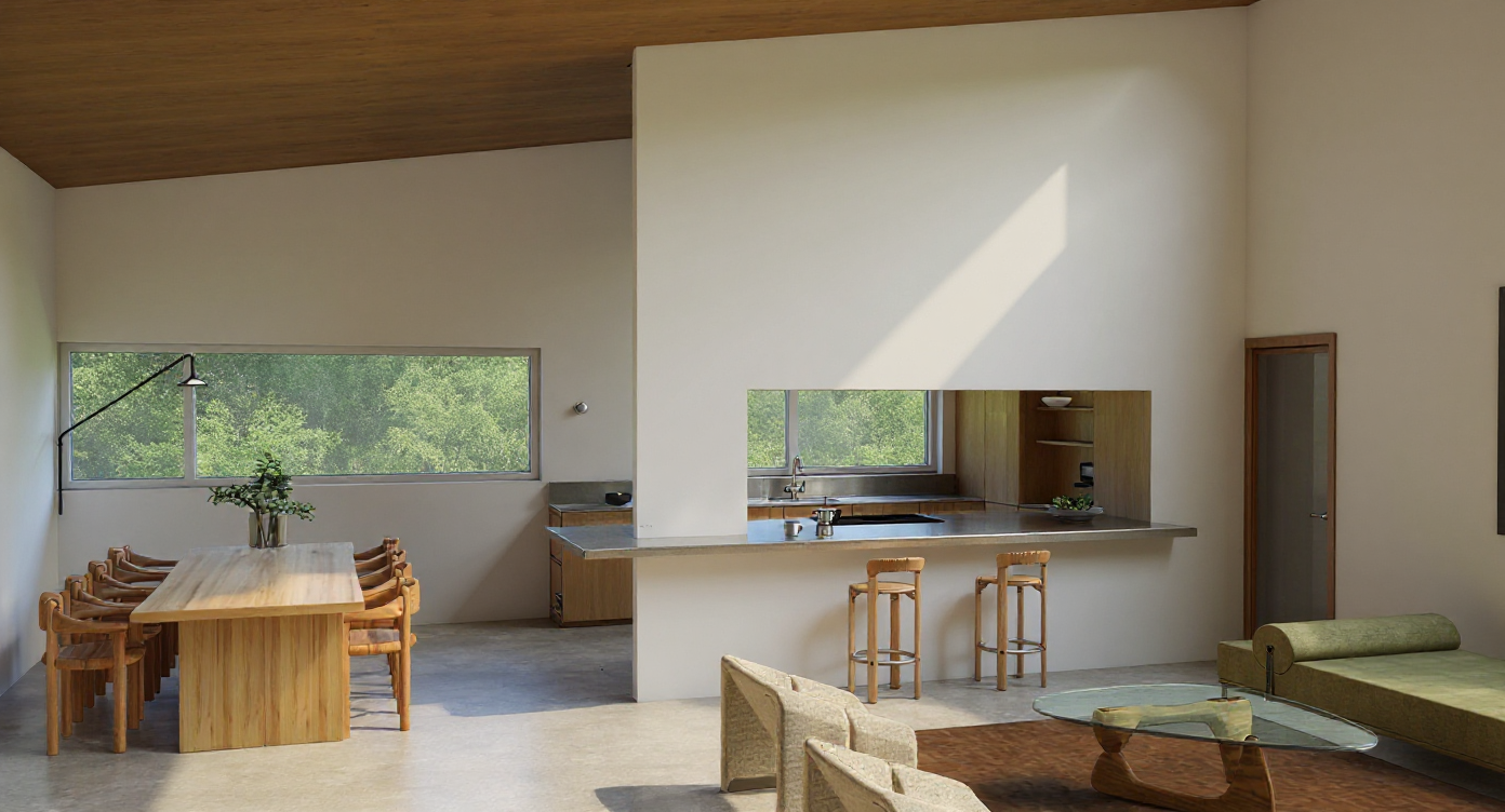 transform this picture into a realistic interior visualization with natural light keep the camera angle keep the original materials and textures make it an ultradetailed view with global illumination and photo based rendering materials