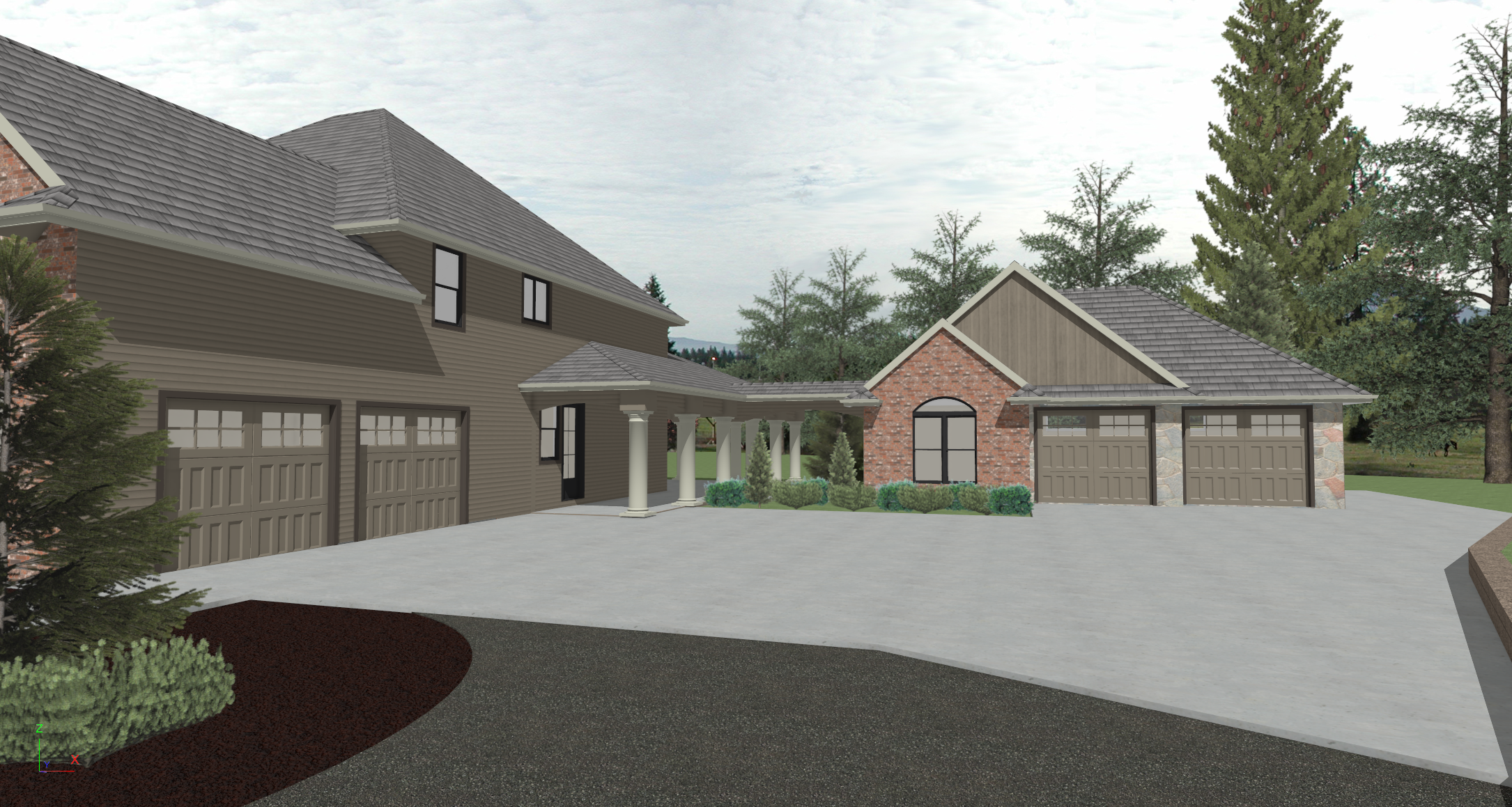 show this home as a photorealistic rendering keep exact architectural details make landscaping more realistic
