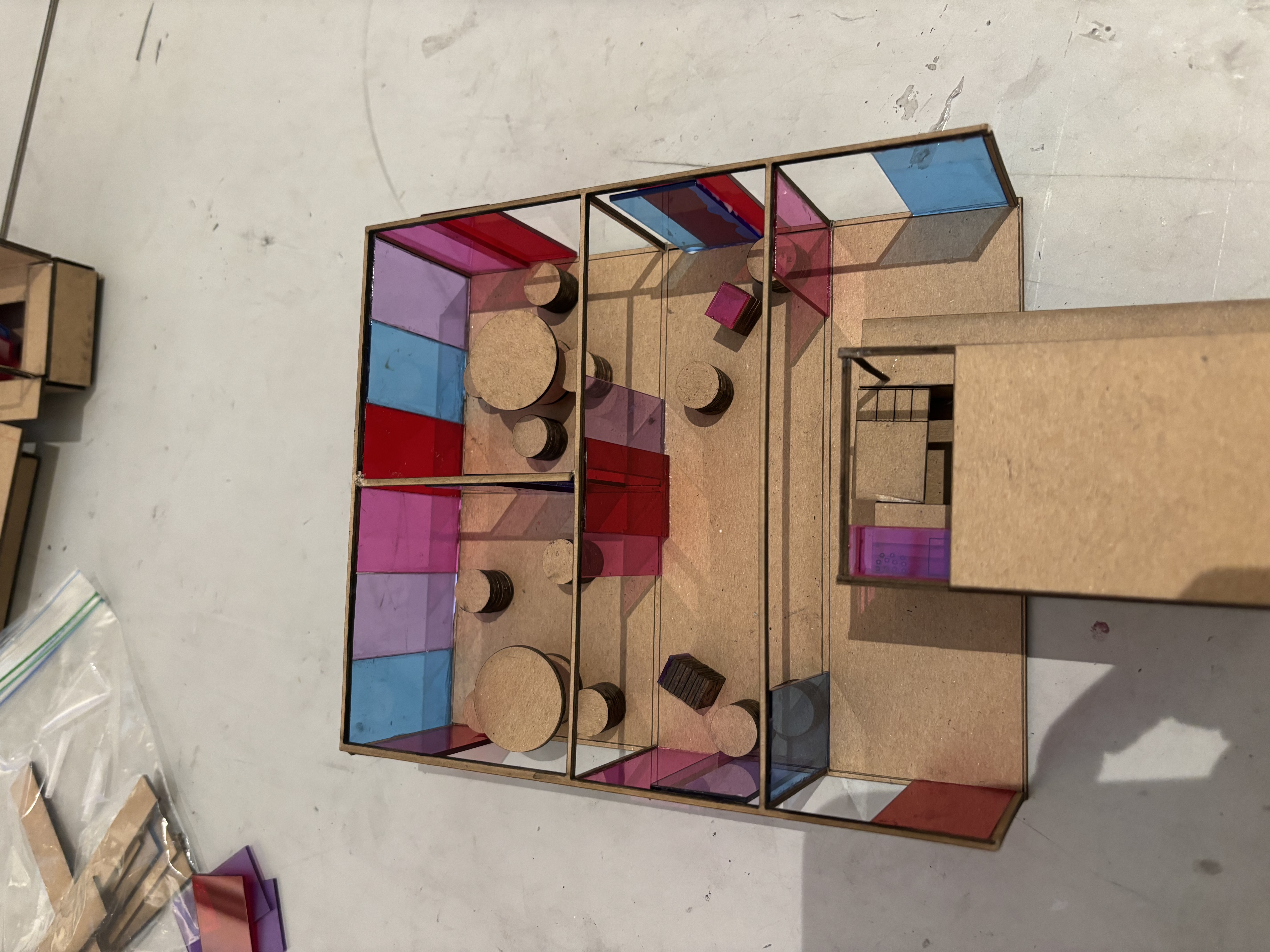 this is a coffee kiosk inside a building the panels are colored glass panels that can move the model is 1 4 1 0 and is 30 8 by 25 6 and the glass panels are 8 tall and 4 3 wide