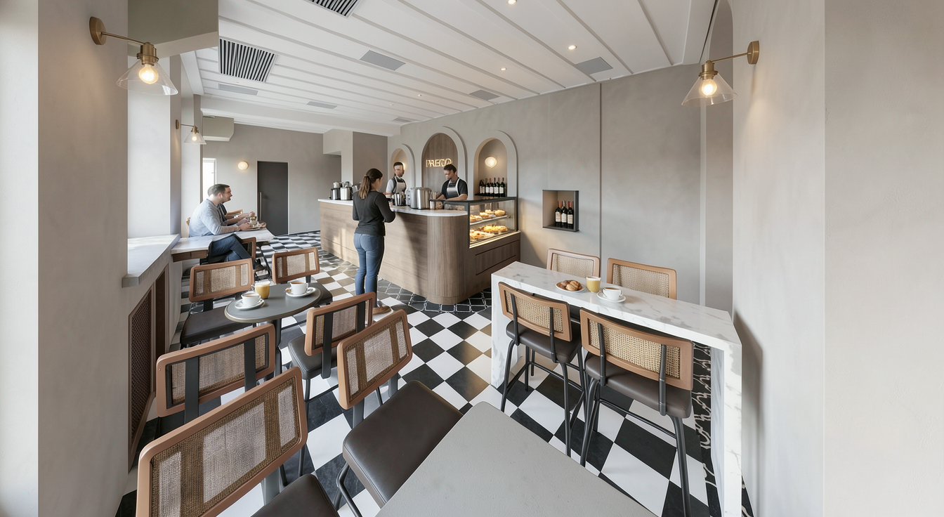 add vegetation and trees to give it context the walls have dark grey wall master paint on the lower dark strio and light grey wall master paint the windows have white moldings