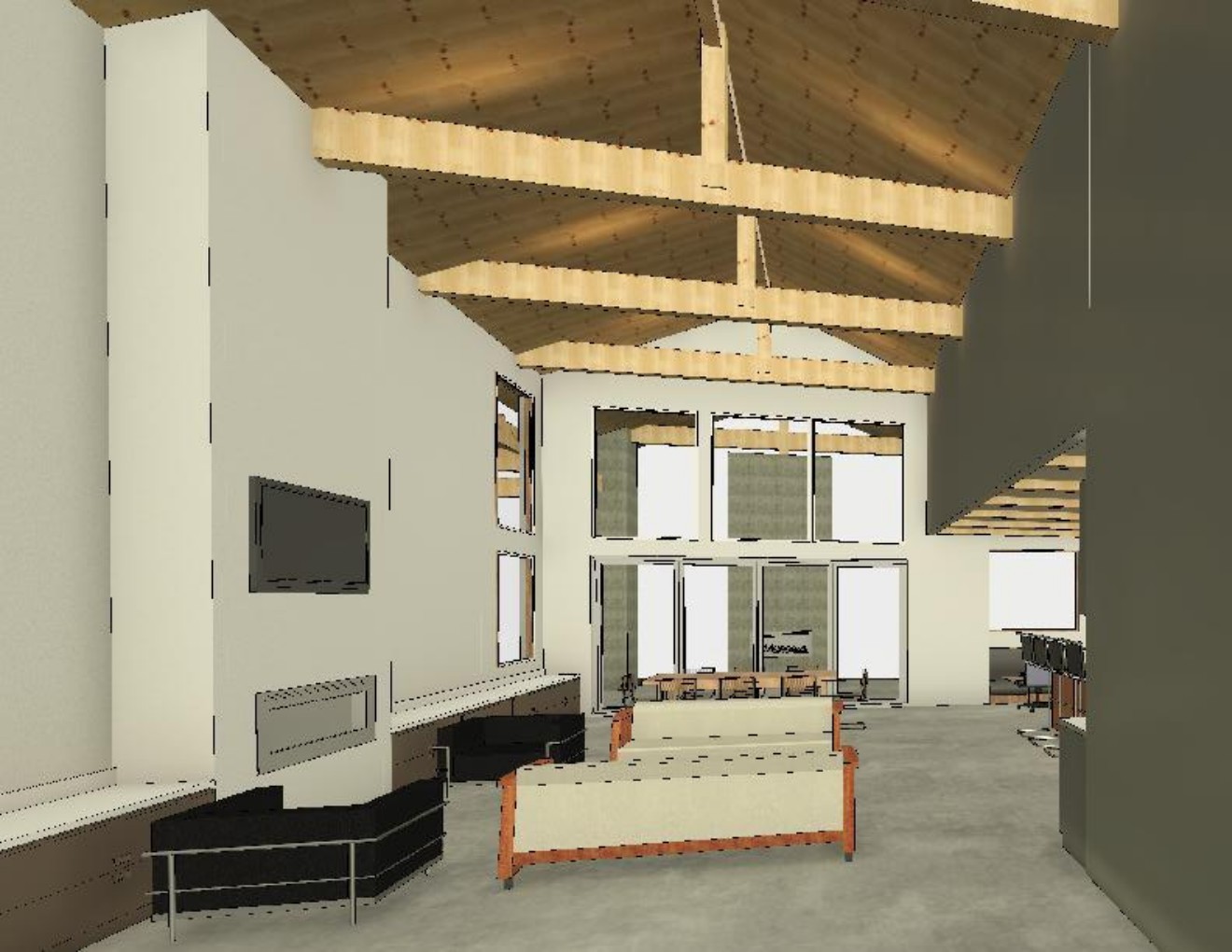 modern farmhouse interior black window frame add in fireplace at the rear backyard
