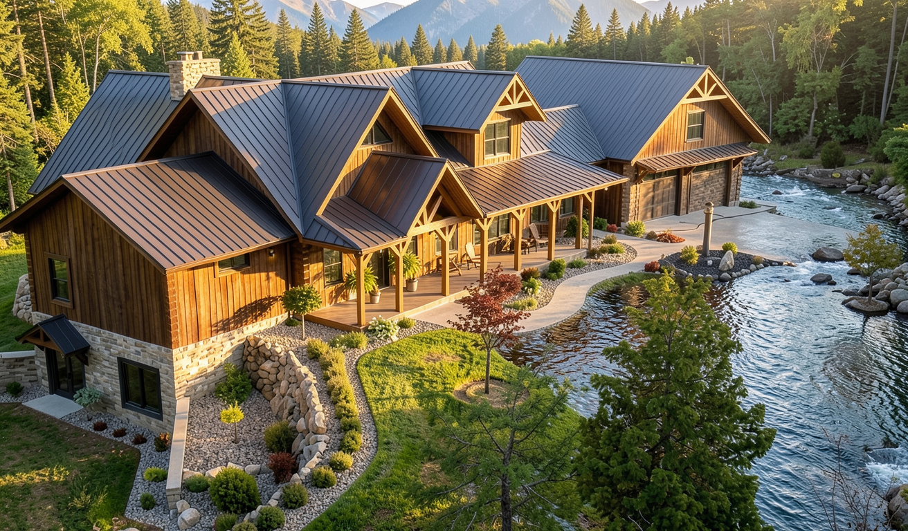 mountain home in texas stone barnwood siding mapel timbers black windows
