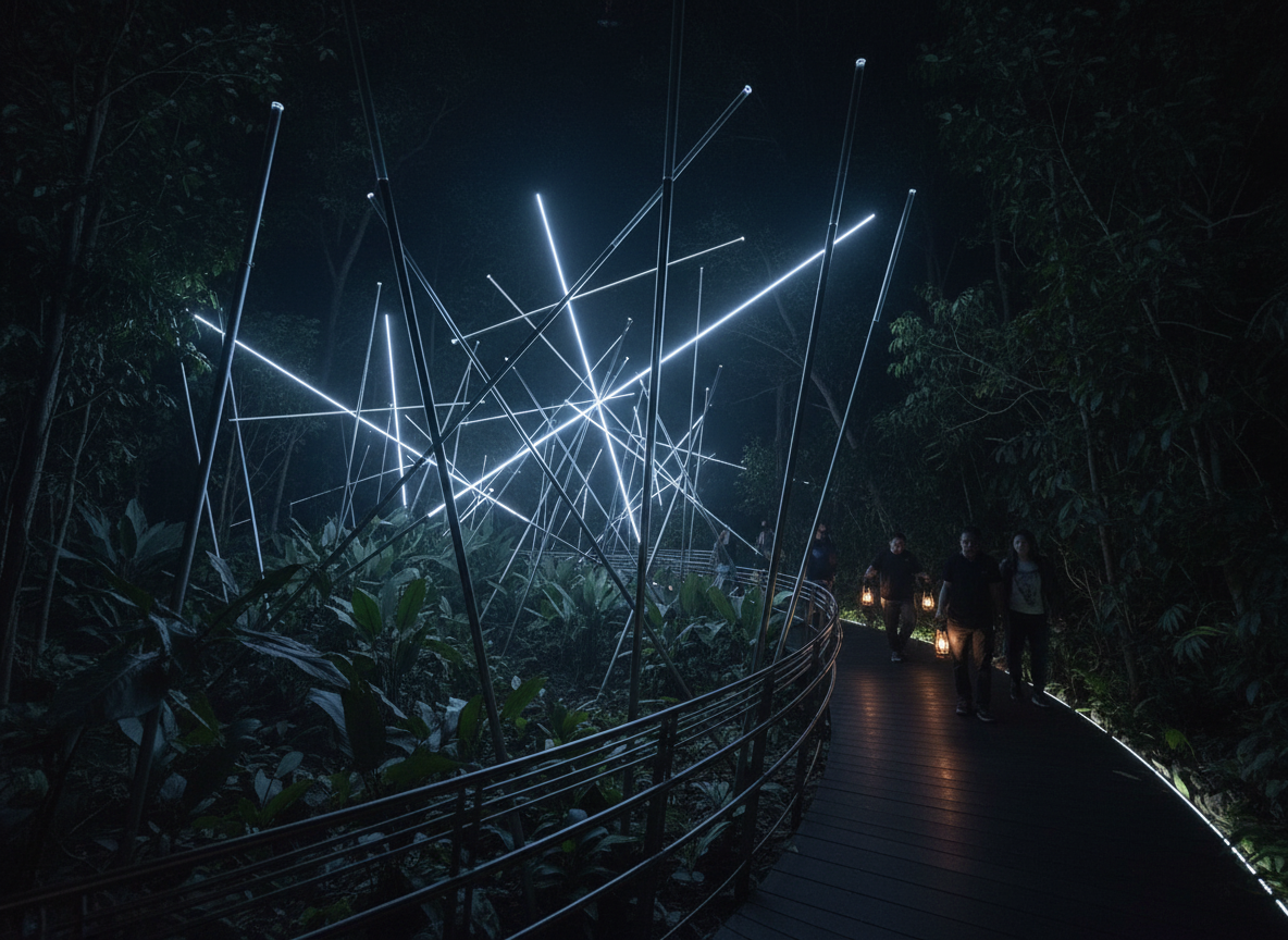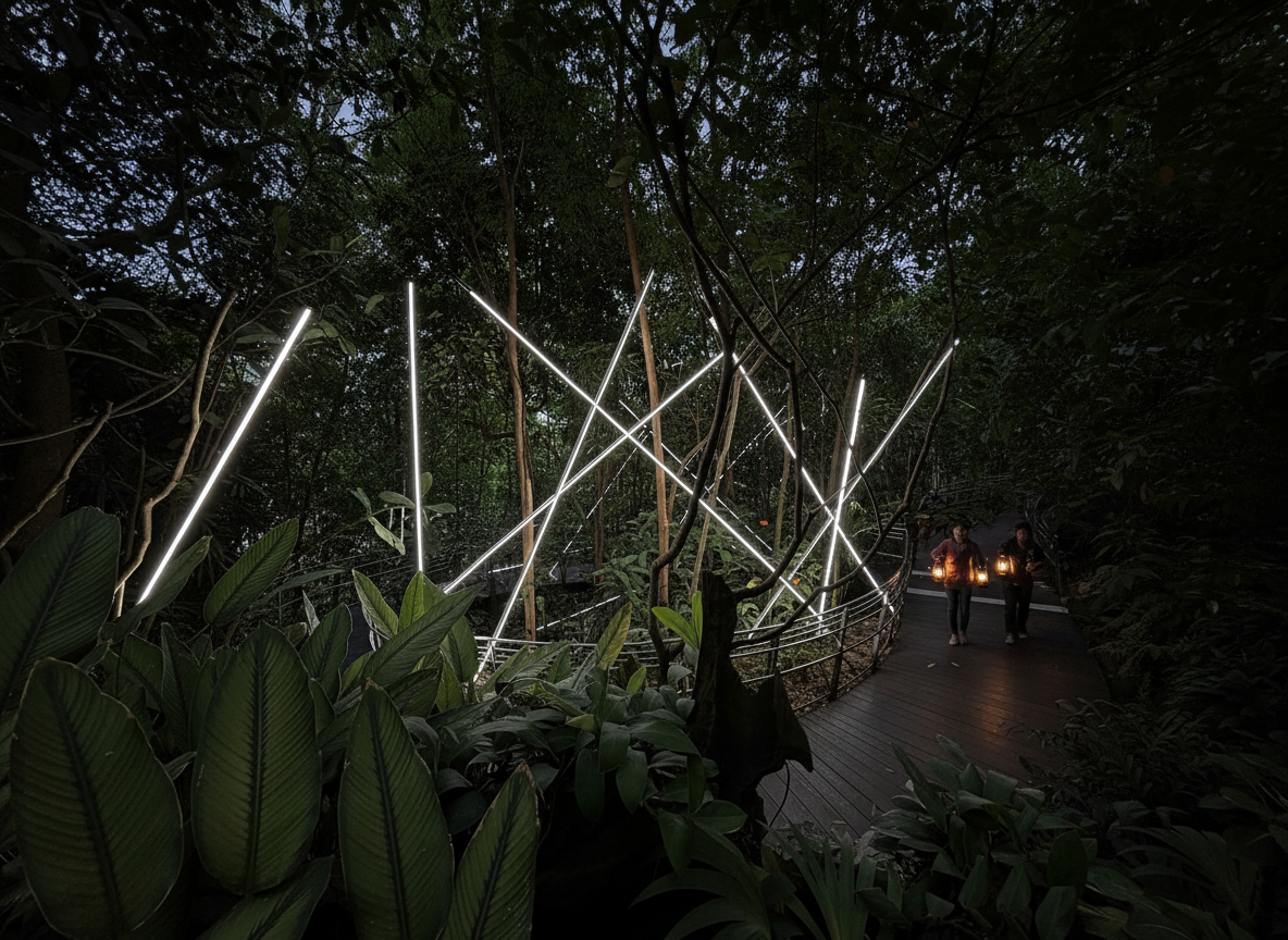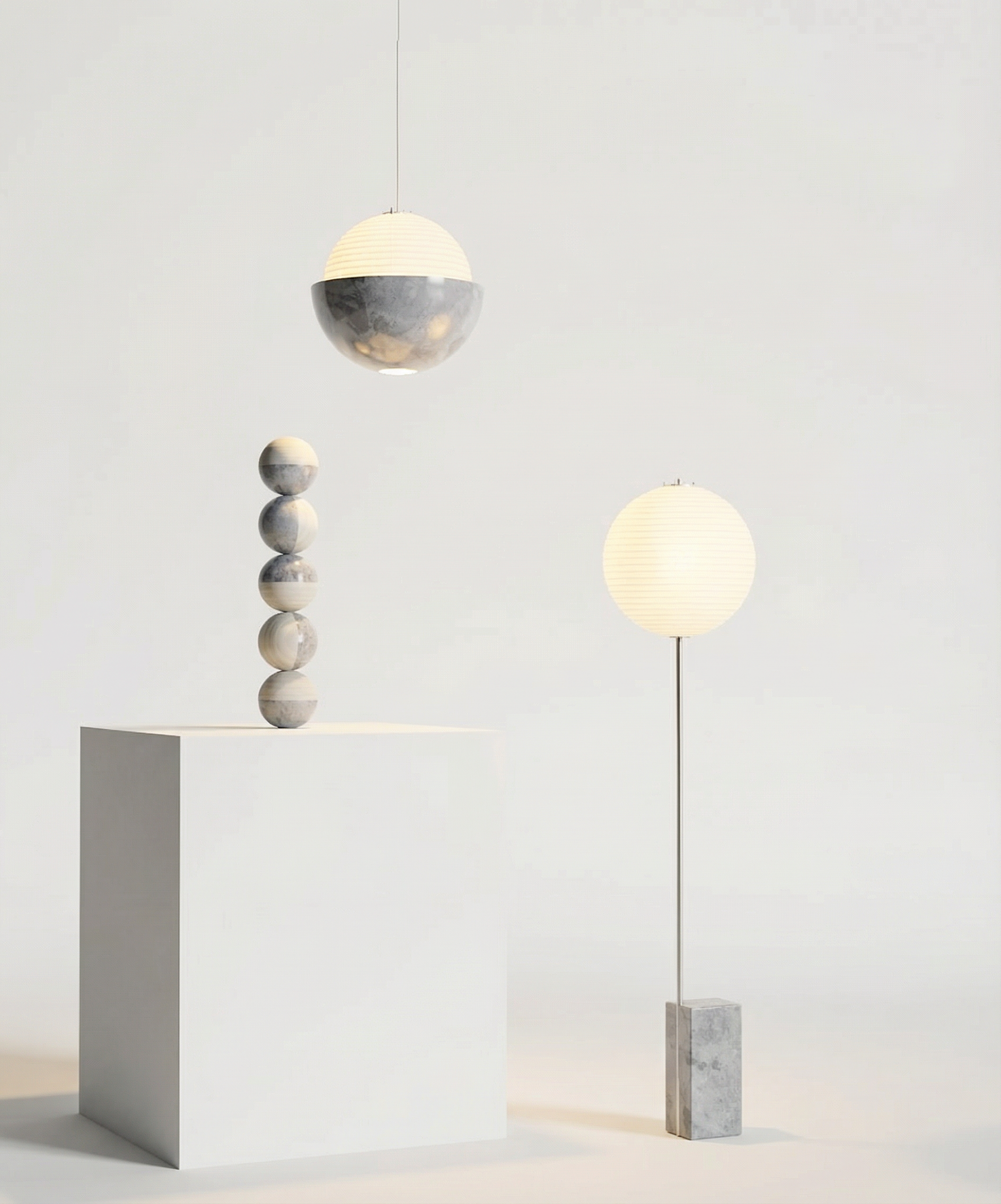 a table lamp made by five rotating spheres half marble half paper akari light