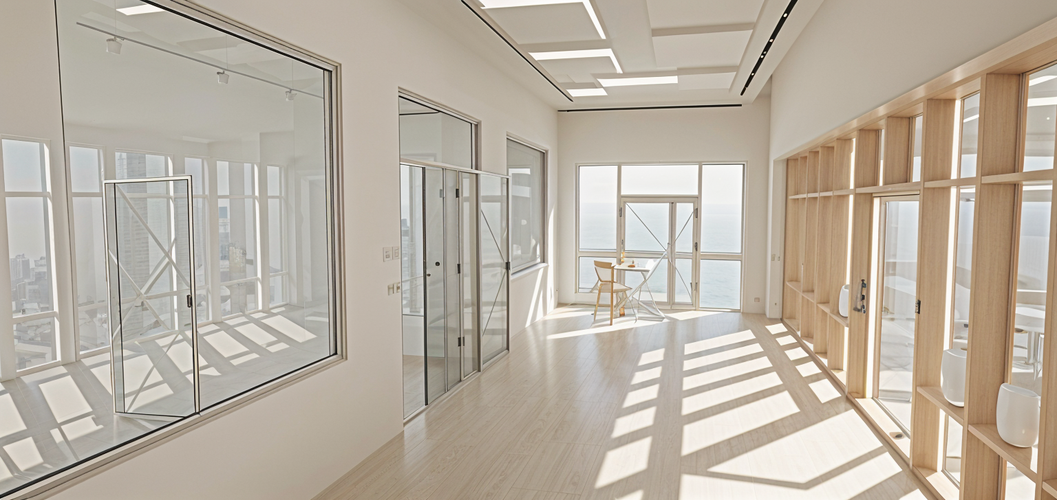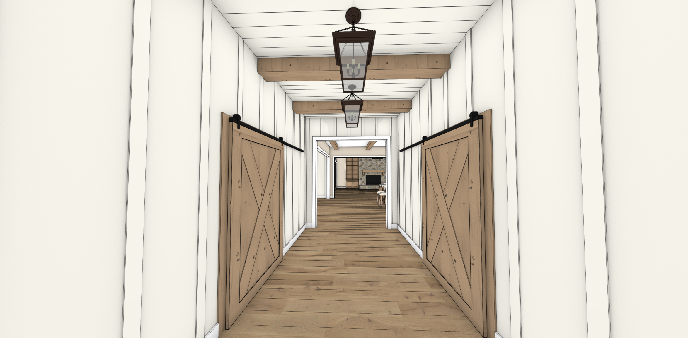 modernist exterior shot change the board and baton paneling to 5 inch white paneling running horizontally change the white ceiling planks to brown change all of the brown on the beams and doors to a little darker rustic brown change the floors to run vertically and make them rustic 5 inch hickory with a natural stain architecture