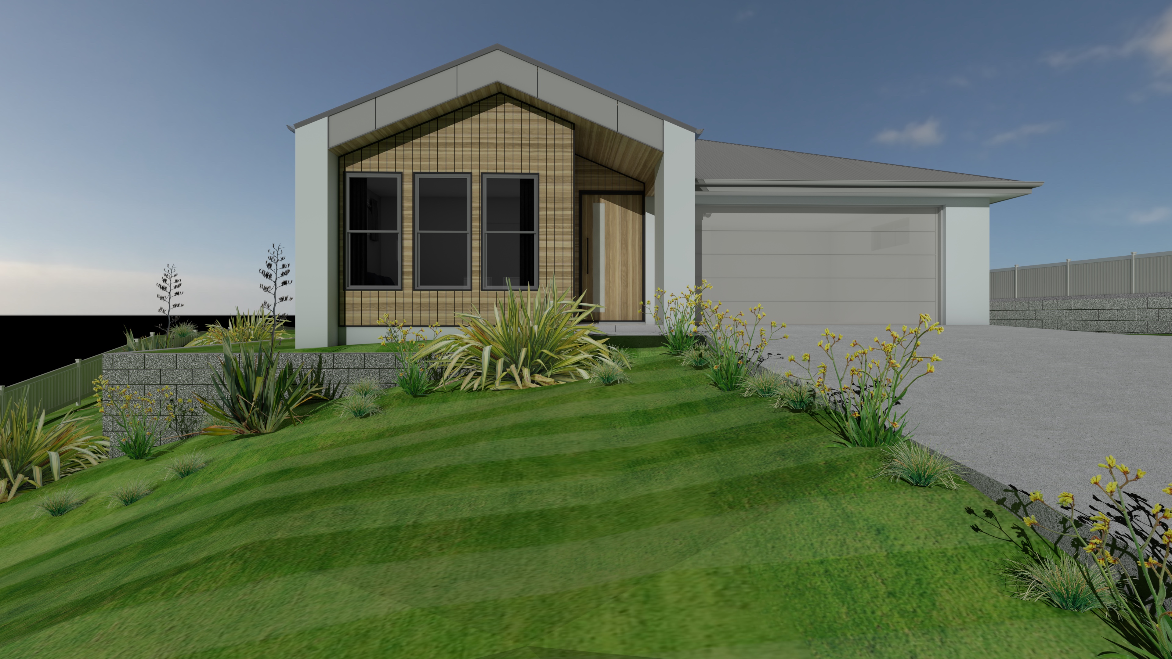 render a photorealistic 3d perspective of this house in cairns queensland australia reference the current material style just enhance them keep model geometry the same windows doors roof walls garage door pavement driveway make a lush vegetation that looks native to cairns do not change the view only enhance the current materials and make the landscape nicer vegetation detailed textures in the wood siding fc siding and glass reflections and a vibrant clear sky with light atmospheric depth render in hyper realistic architectural visualization quality 8k resolution