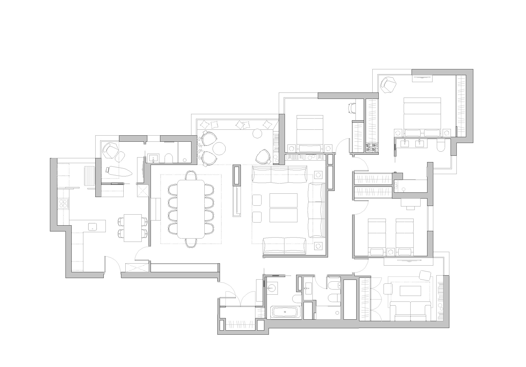 convert this floor plan into a minimalist isometric 3d view of a full house show the space from an elevated angle with furniture walls and details visible wood light floor and beige furniture use the same furniture as shows on the plan do not change the orientation of the floorplan