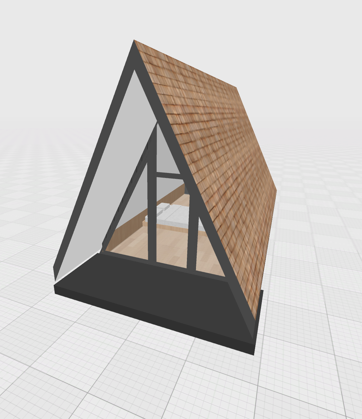 please add a thatch roof to this a frame cabin set in tropical setting plywood ceiling inside cabin