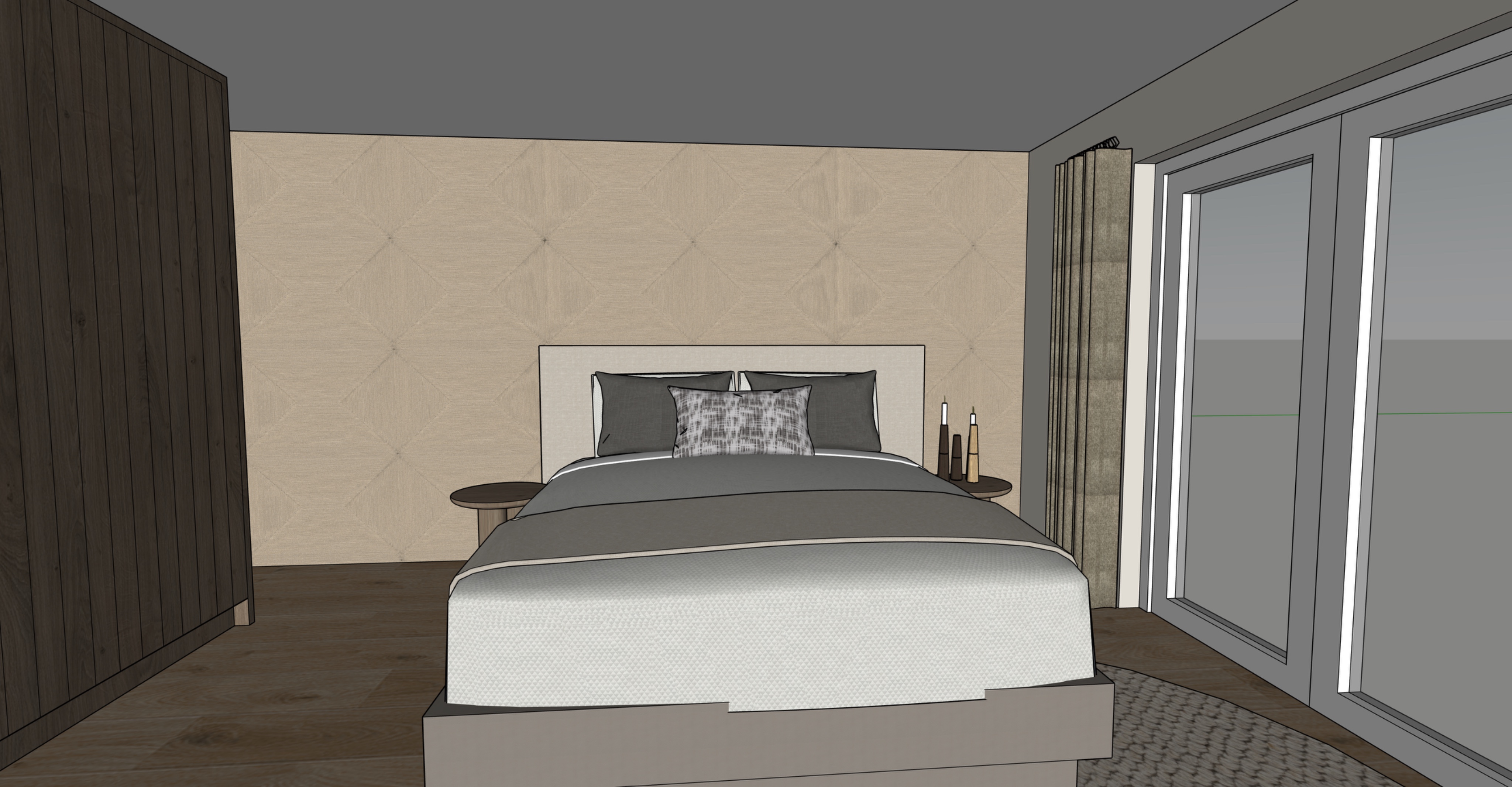 render of 3d model natural light coming trough the windows
