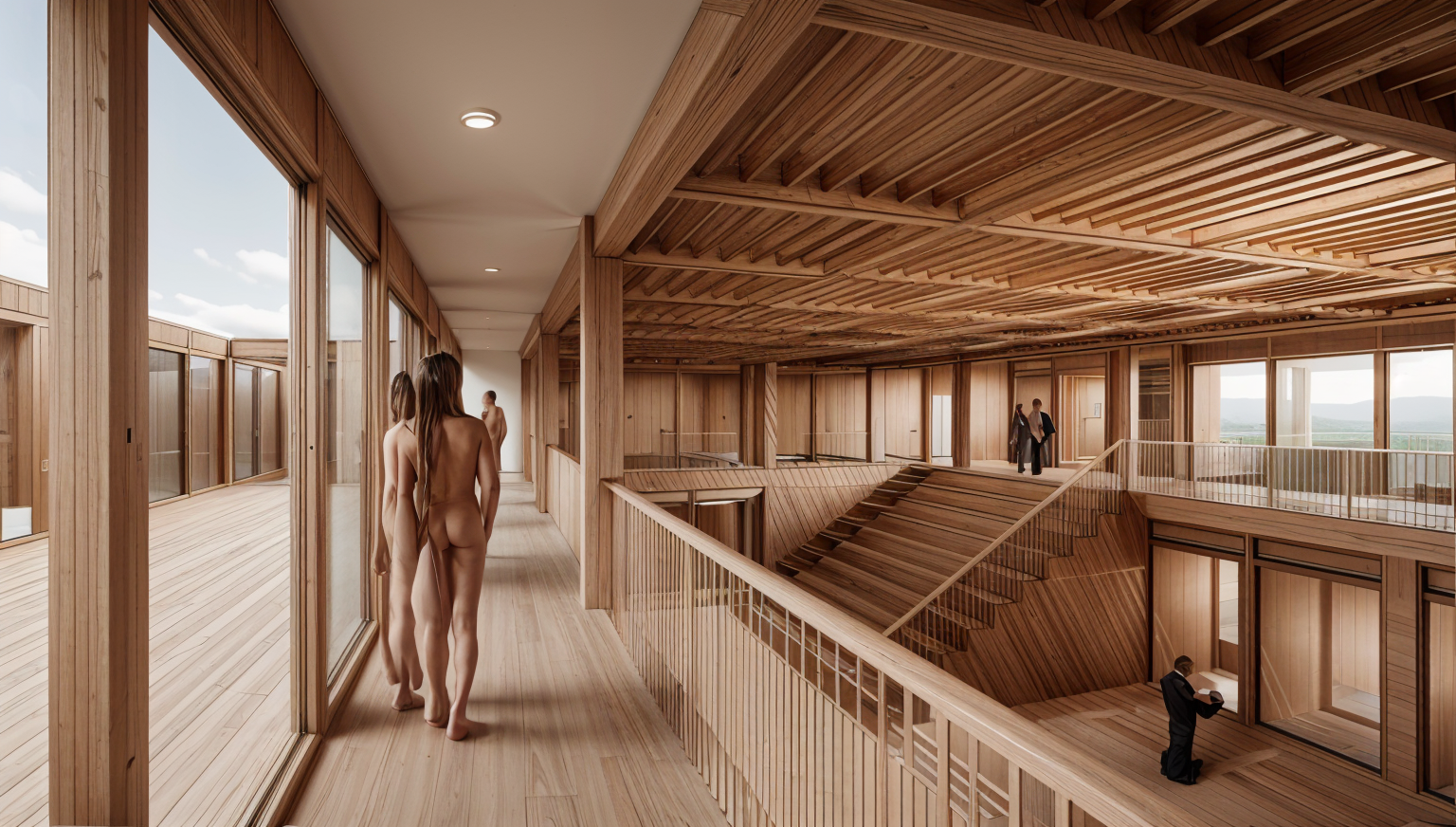 render a modern house with a gabled roof featuring white and light gray tones for the walls and roof add expansive glass windows and a sleek balcony surround the house with vibrant green grass and a row of lush dark green trees incorporate a rectangular blue pool at the foreground framed by elegant gray paving stones set the scene under a clear blue sky to create a serene and inviting atmosphere architecture