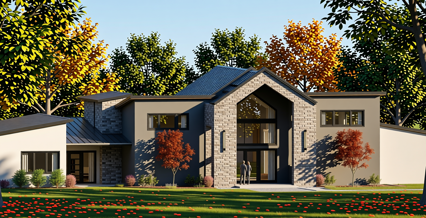 show some oak trees around and blue sky