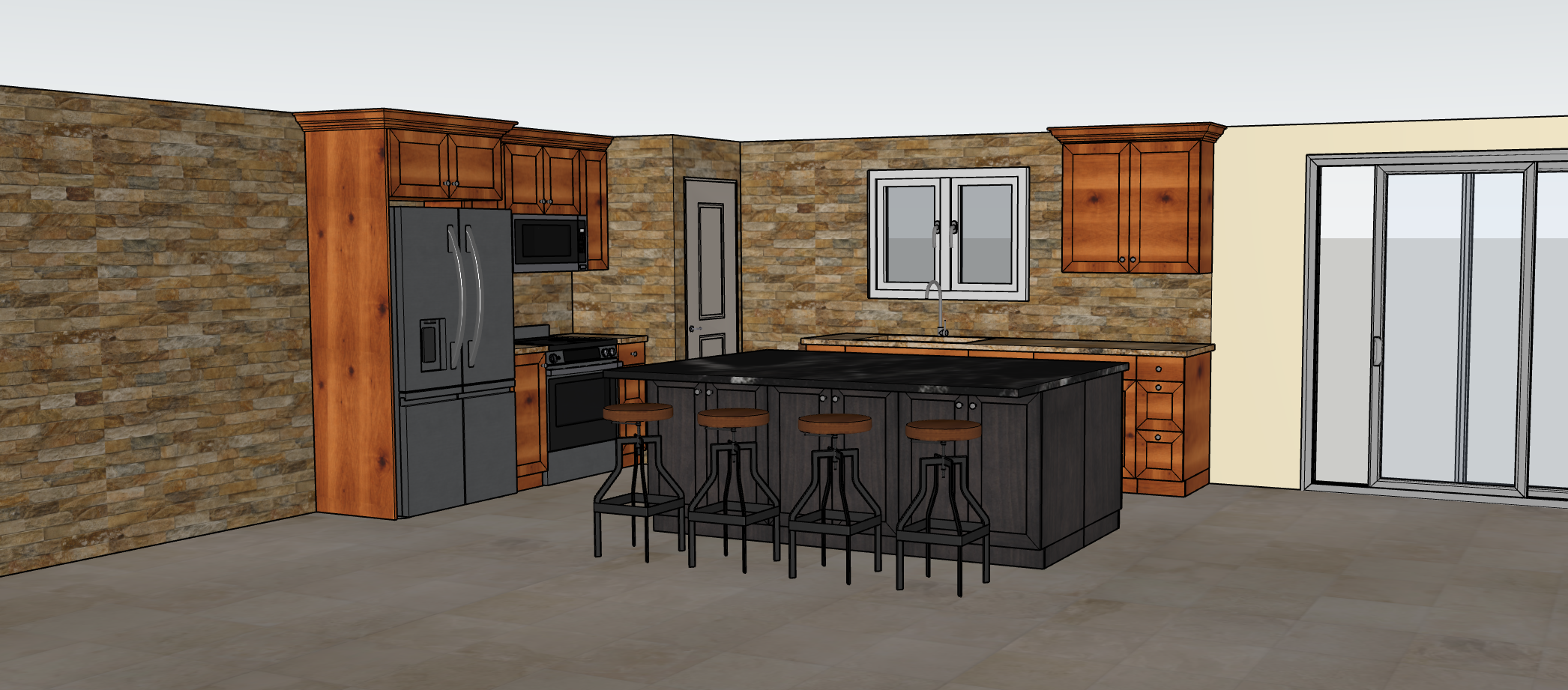 this is a beautiful walkout basement apartment with tons of natural light all the cabinets along the walls are a natural stained alder with a toffee glaze the island is a dark stained alder all the knobs are brushed nickel the floors are a off white tile