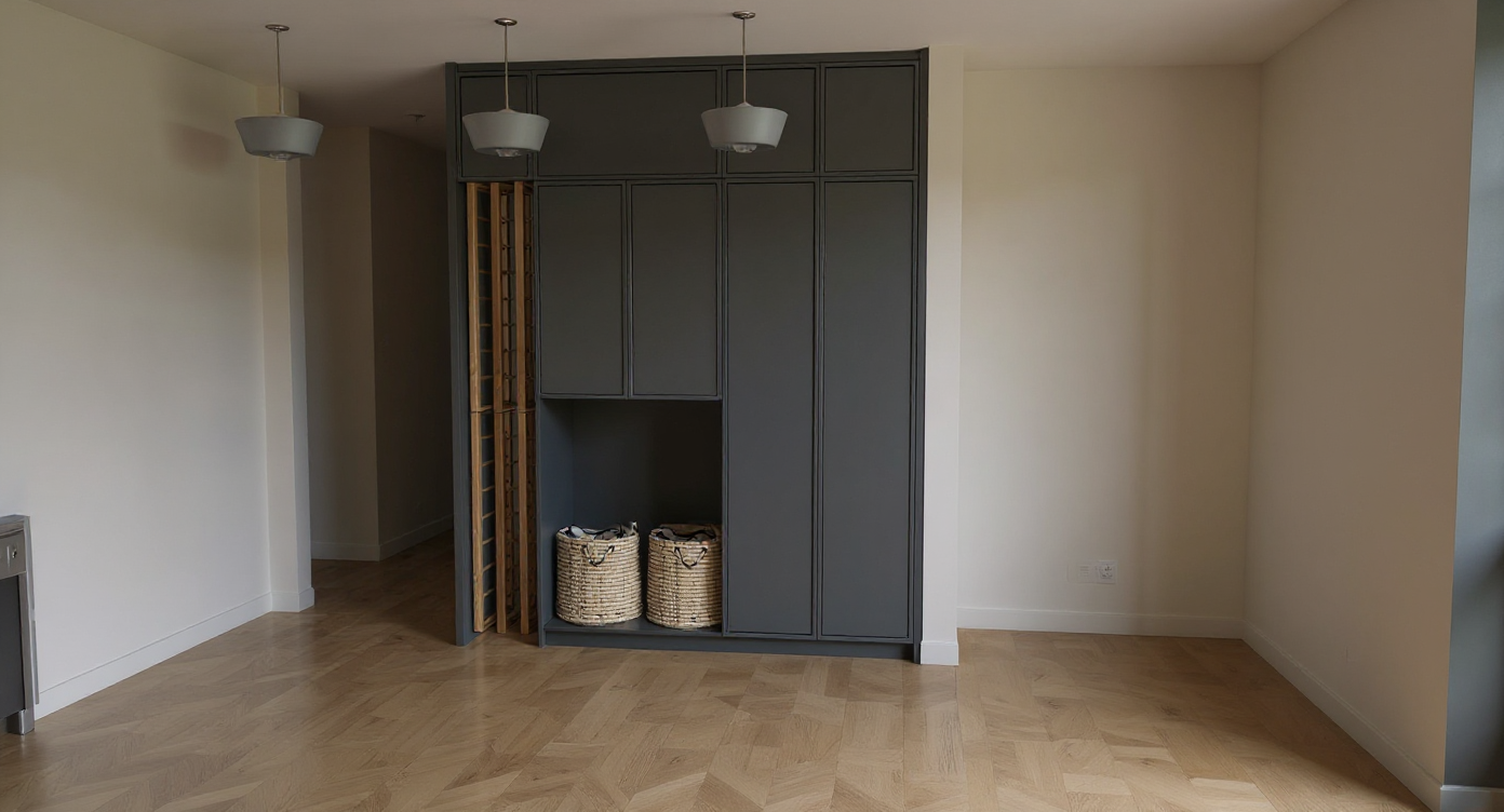 this is in ground floor its a coffe open space that will serve a car servise bussines in the window in the front is main road and window in the right is parking add sunlight and modern render generate from the image that i put