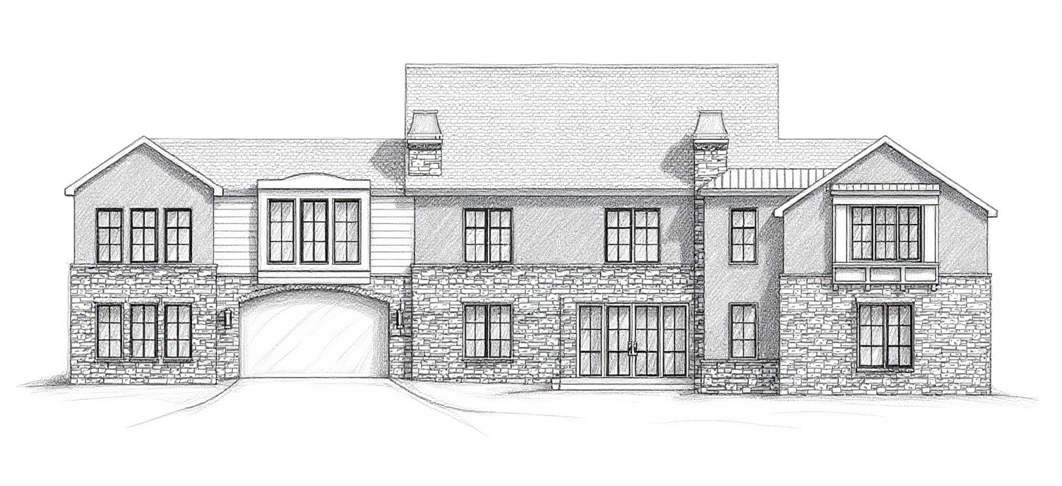 exterior shot make this rendering an ultra realistic photo do not change any design elements and use grey tones with a black shingled roof do not reduce the image i want to see the whole house
