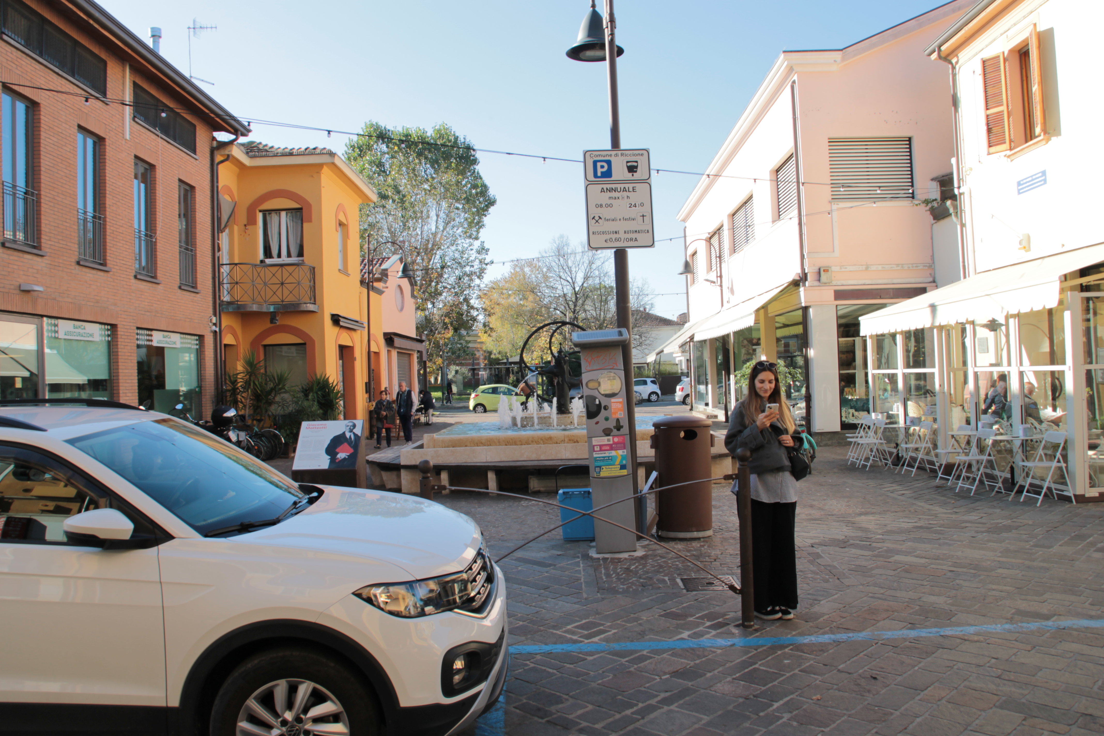 elimina l auto in primo piano elimina il lampione elimina il cestino portarifiuti elimina il parcometro elimina il parapetto metallico ed elimina i cavi in alto con le lampadine