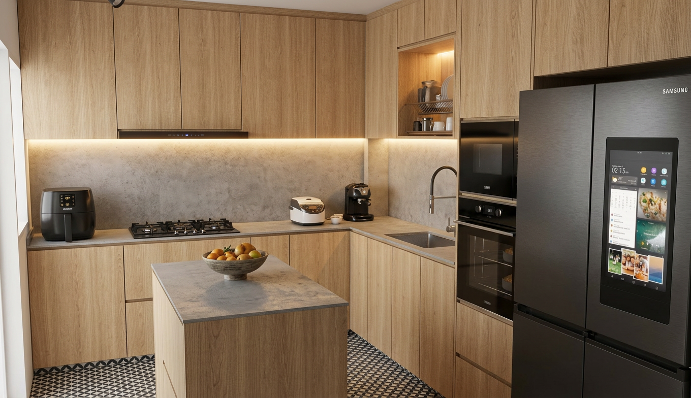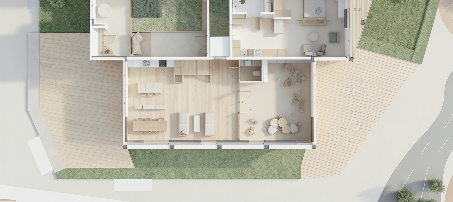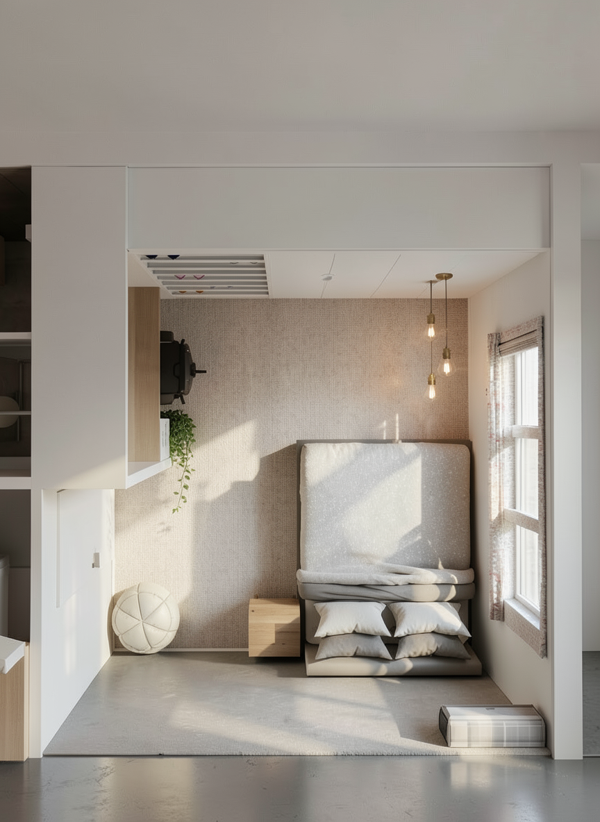 manintain the wallpaper texture remove the lights make the ottoman midgray remove the plant