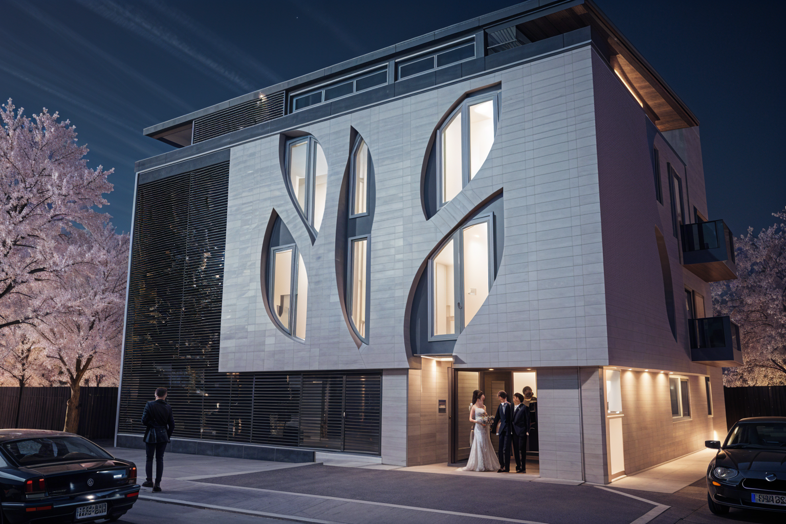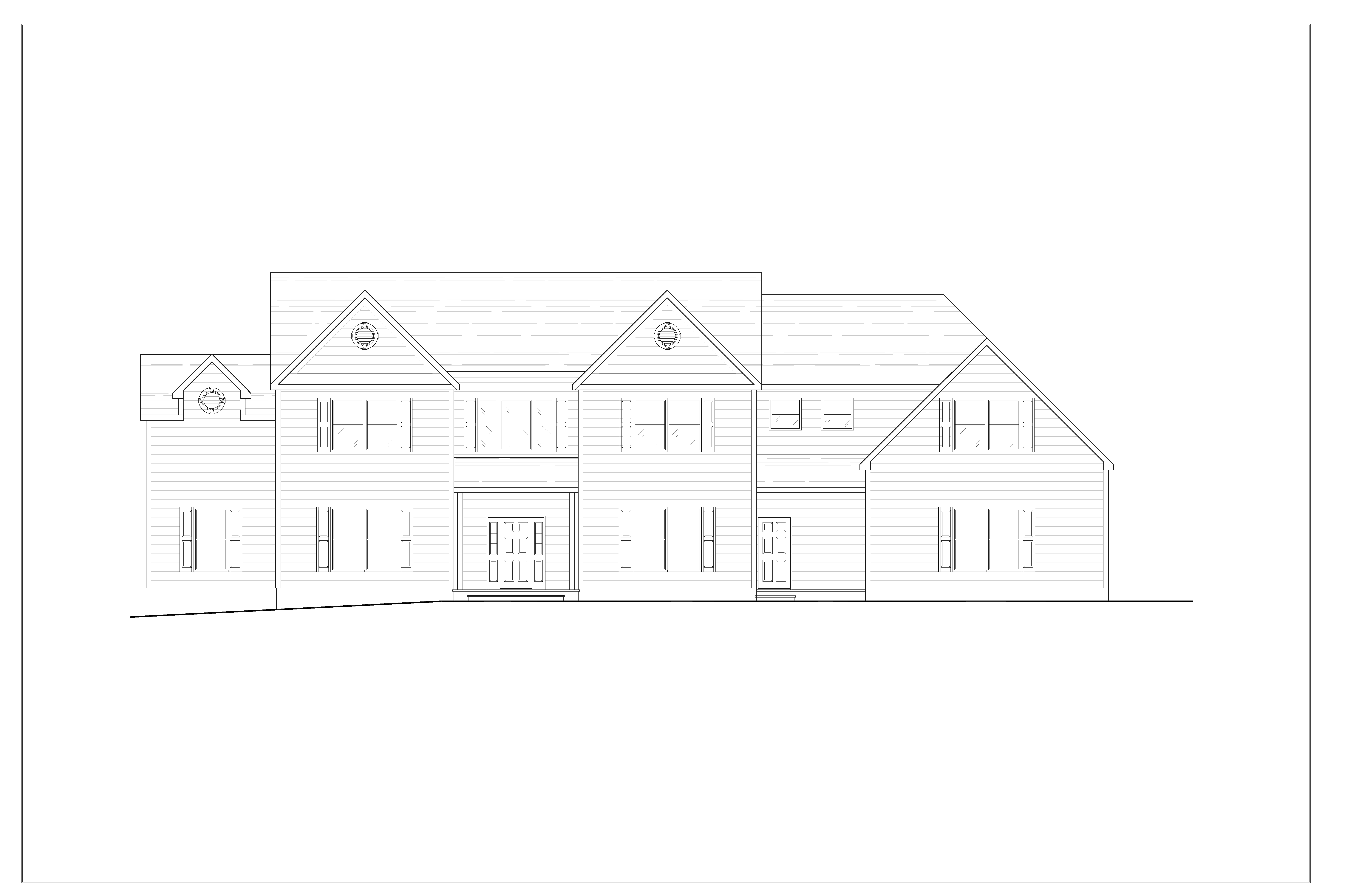 add green grass and a blue sky with clouds the house siding should be gray with white trim and white soffits the roof color should be a dark charcoal color the shutters should be black and the foundation should be smooth concrete add shrubs and flowers in front of the house
