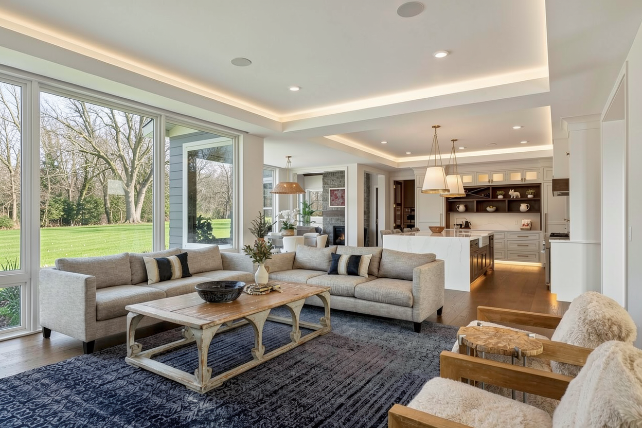 remove snow for spring with grass and leaves on trees on the outside of the windows