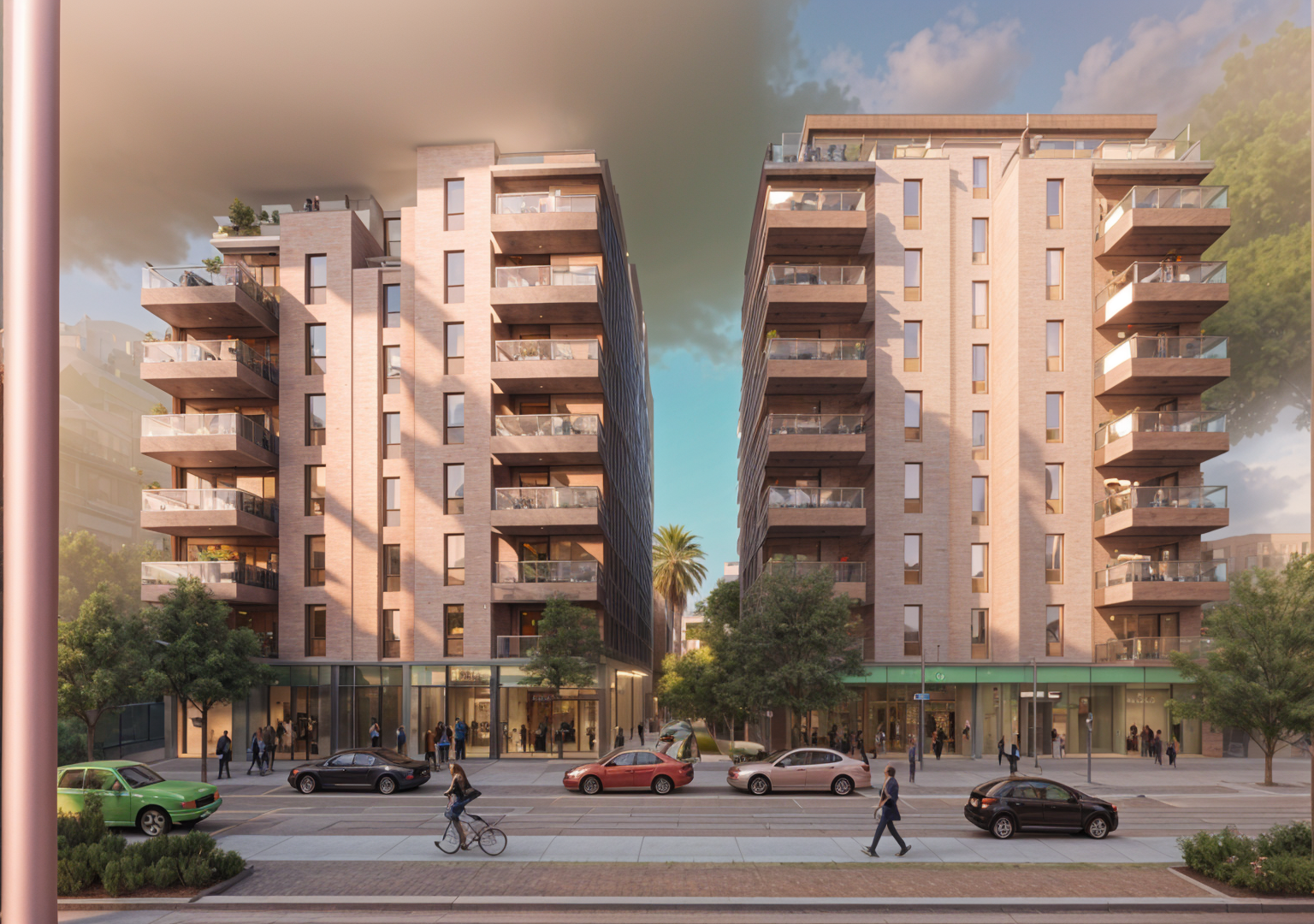 night shot hyper realistic in field with trees red brick neo georgian architecture