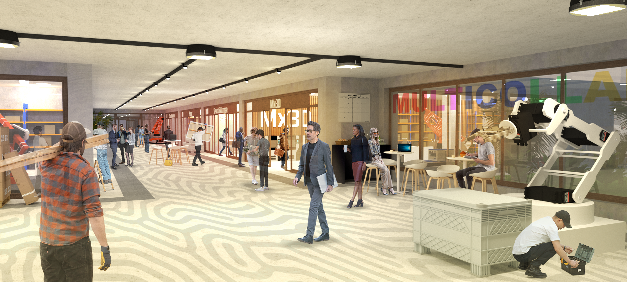 modern exterior shot vibrant coworking makerspace tech orientated architecture