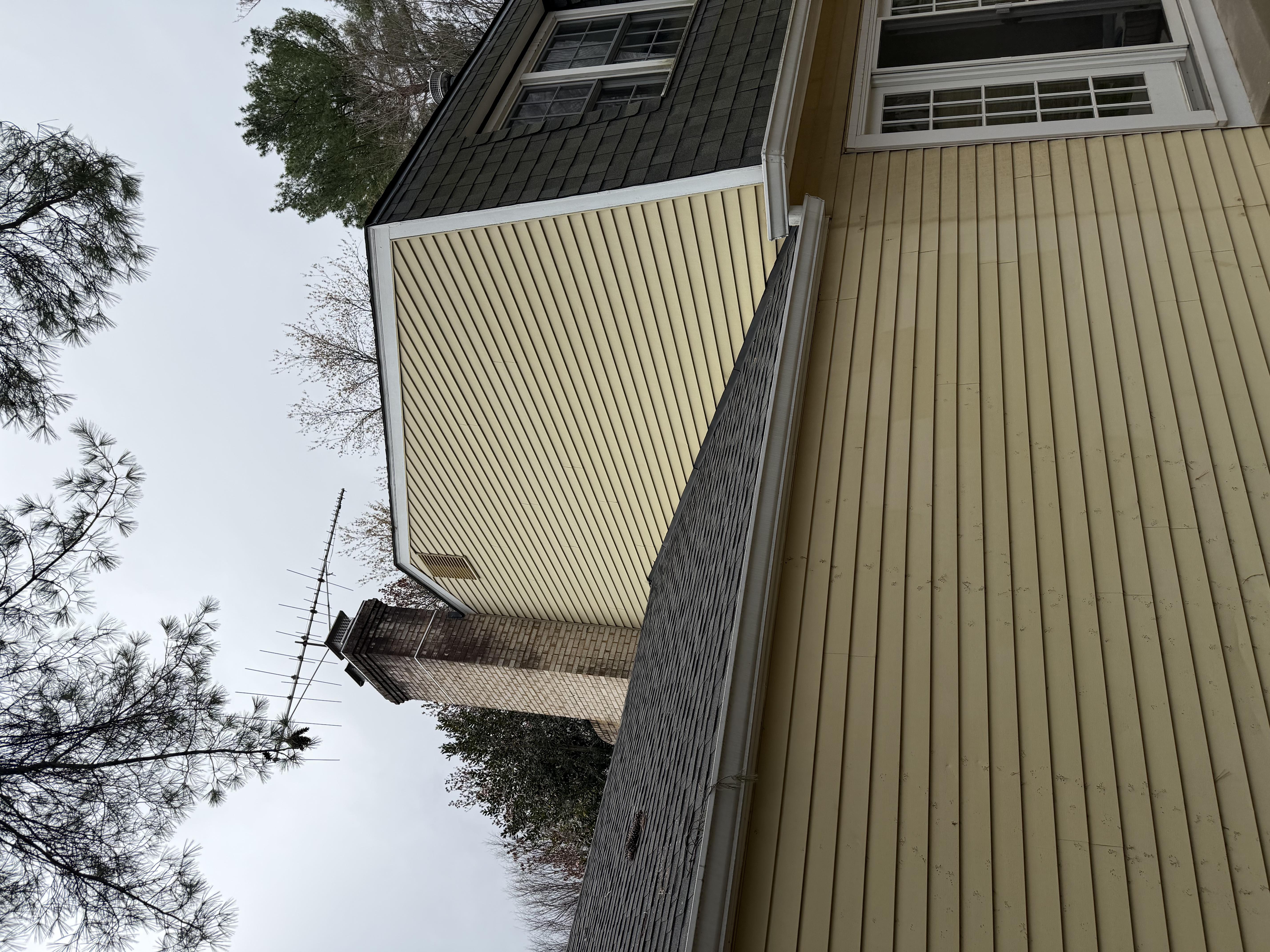 create a black and white architectural orthographic elevation of the left side of the house from the photo that could be used for material takeoffs