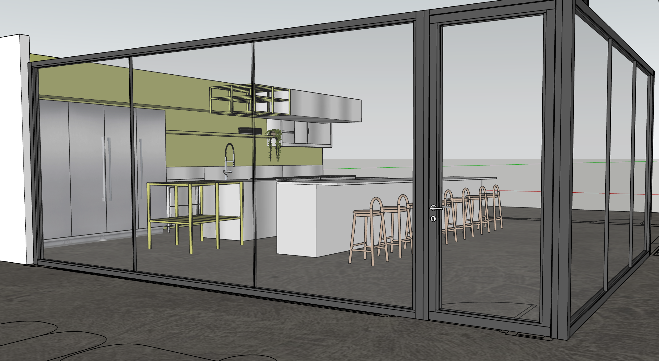 match metal shelf on floor to green wall