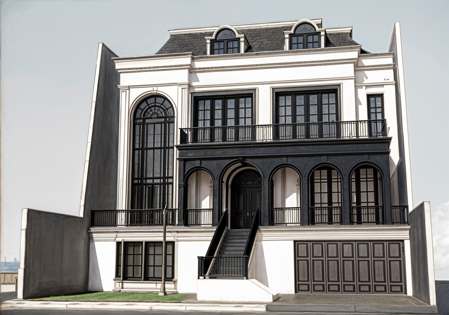 minimalism exterior shot vegetation around the house car in front of the garage architecture