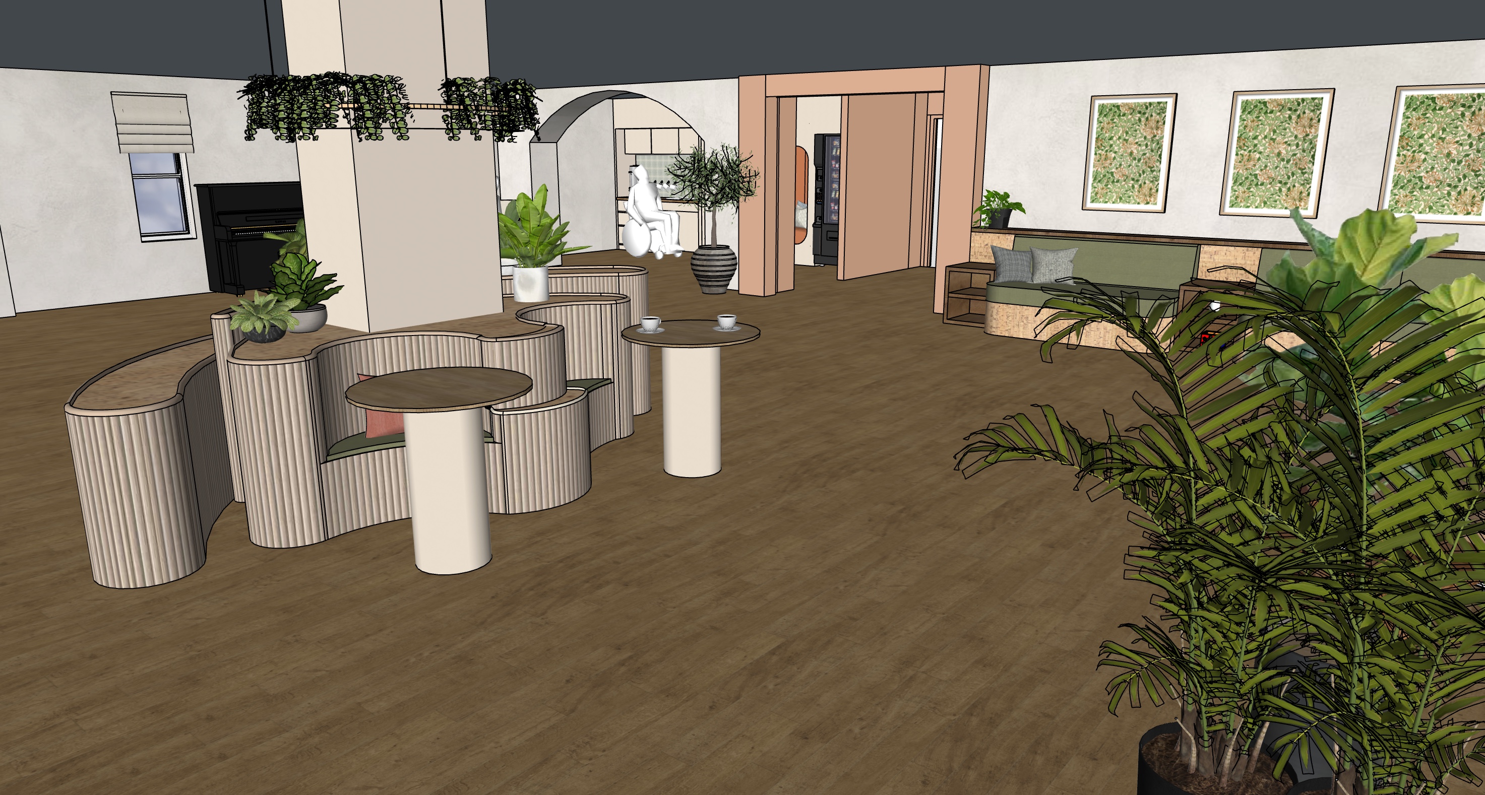 make a photo realistic render use natural light add typical office panelled ceiling with the general light on add accent lighting be very precise with the render don t add any new objects add people in wheelchairs