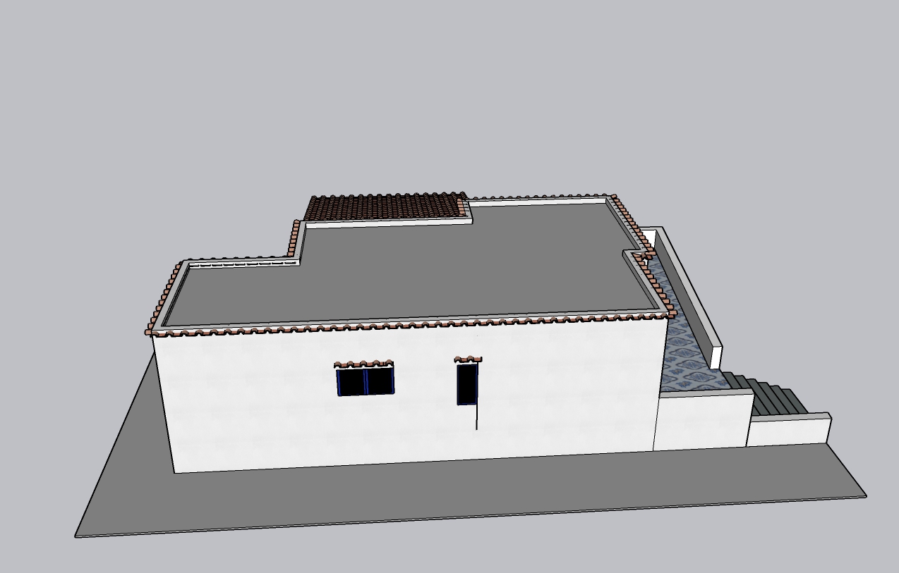 luce nelle finestre di colore blu tettoia con pilastri in pietra e struttura in legno con copertura con tegole muratura colore bianco nuovo
