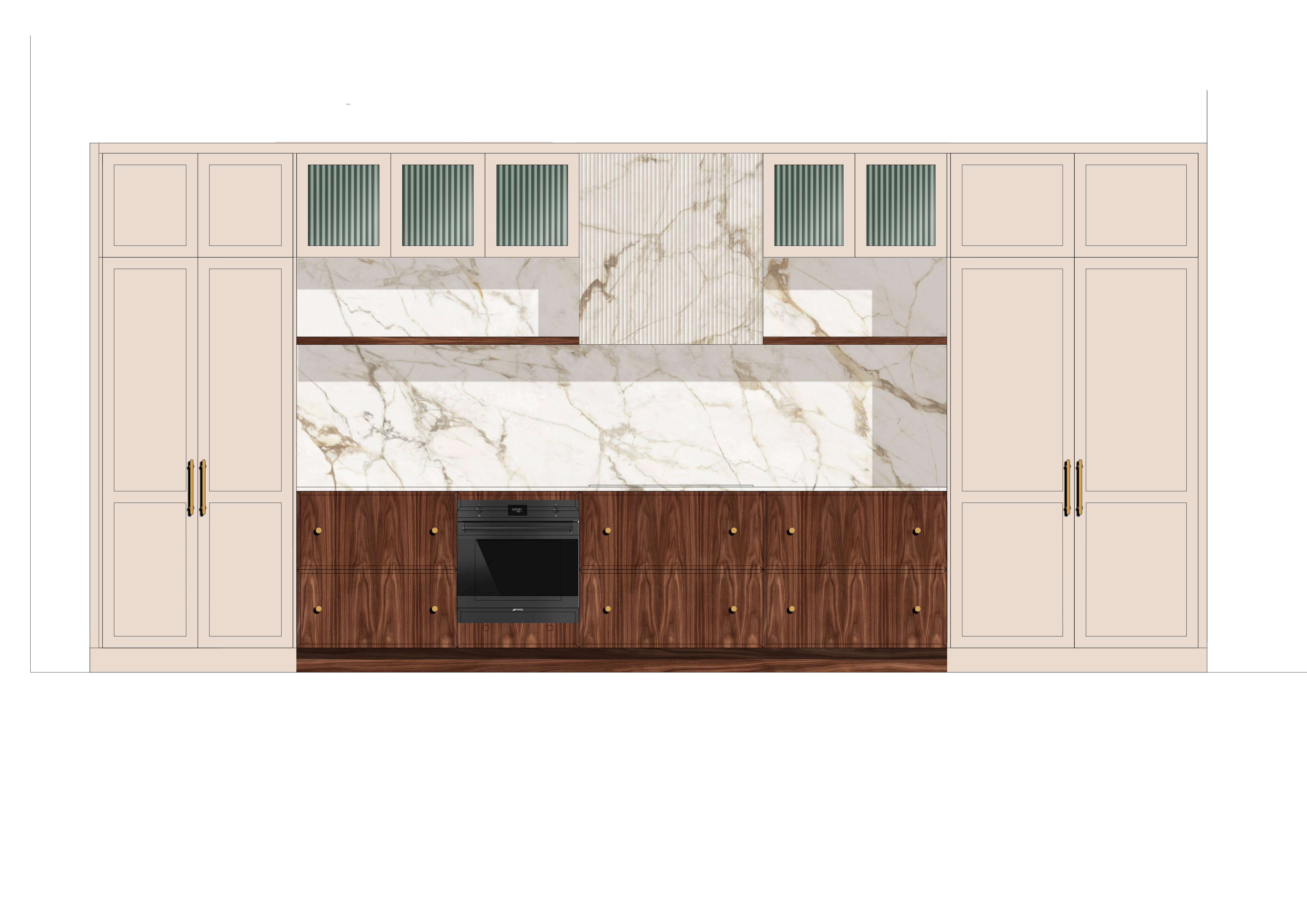 reeded glass in top cabinets