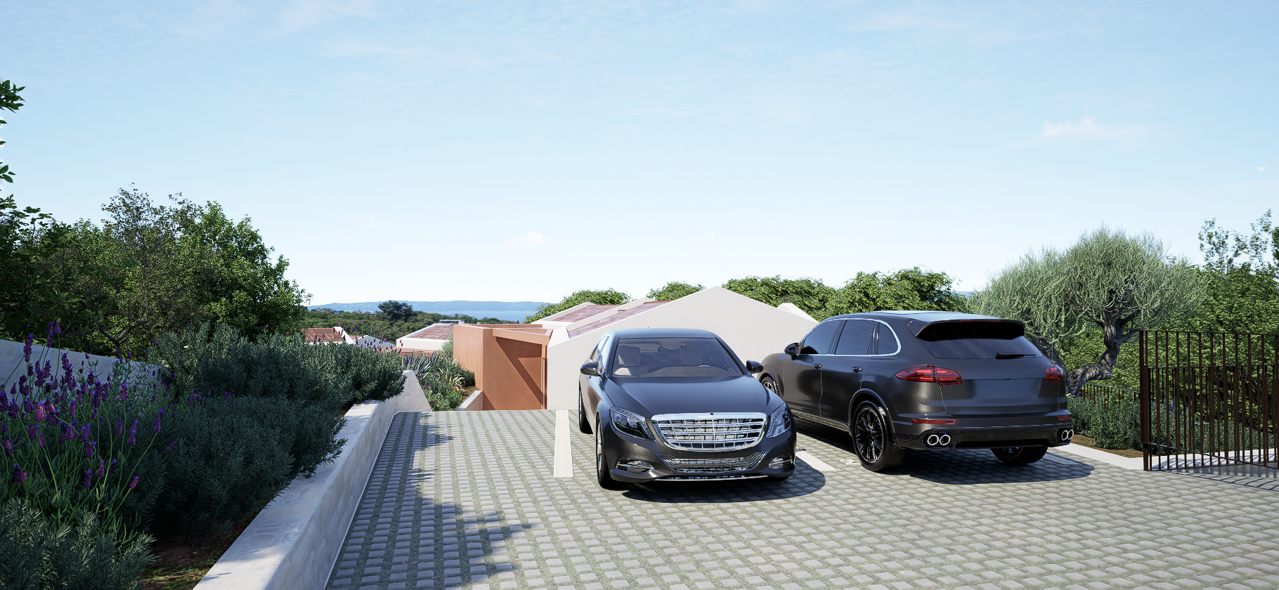 change only details and add croatian number plates on the cars and make coble stones with grass on the floor more realistic dont change colors or geometry architecture