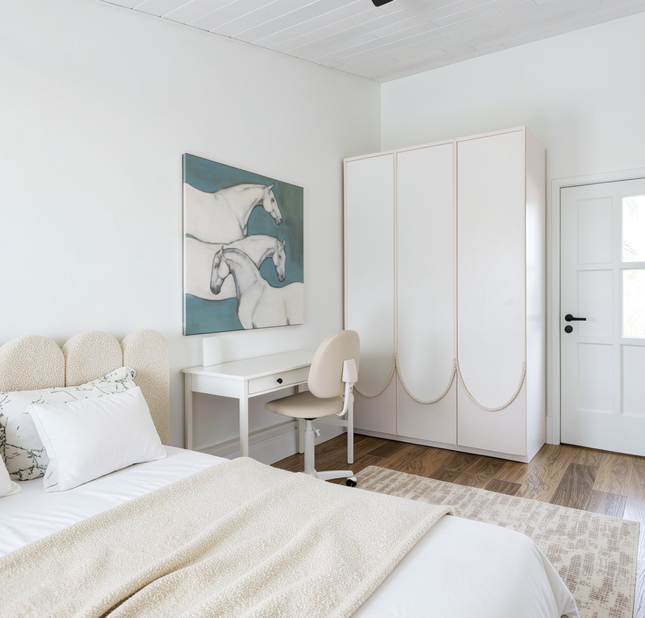 change the top part of the wardrobe doors to mirrors keep everything else unchanged