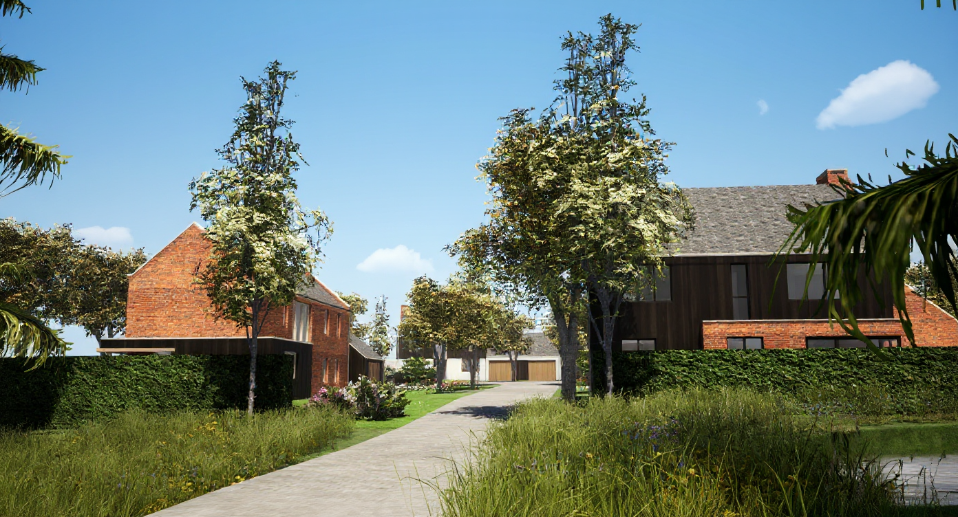 create a modern bathroom with a sleek design the walls are a smooth charcoal gray adding depth and sophistication the double vanity features a polished dark wood texture with two elegant white vessel sinks and chrome faucets the shower has clear glass panels and a minimalistic chrome showerhead adjacent to glossy white tiles include a spacious walk in area with a white bidet and toilet the floor is covered with stylish patterned tiles in shades of gray and blue introduce soft natural sunlight filtering from above to create a calming atmosphere