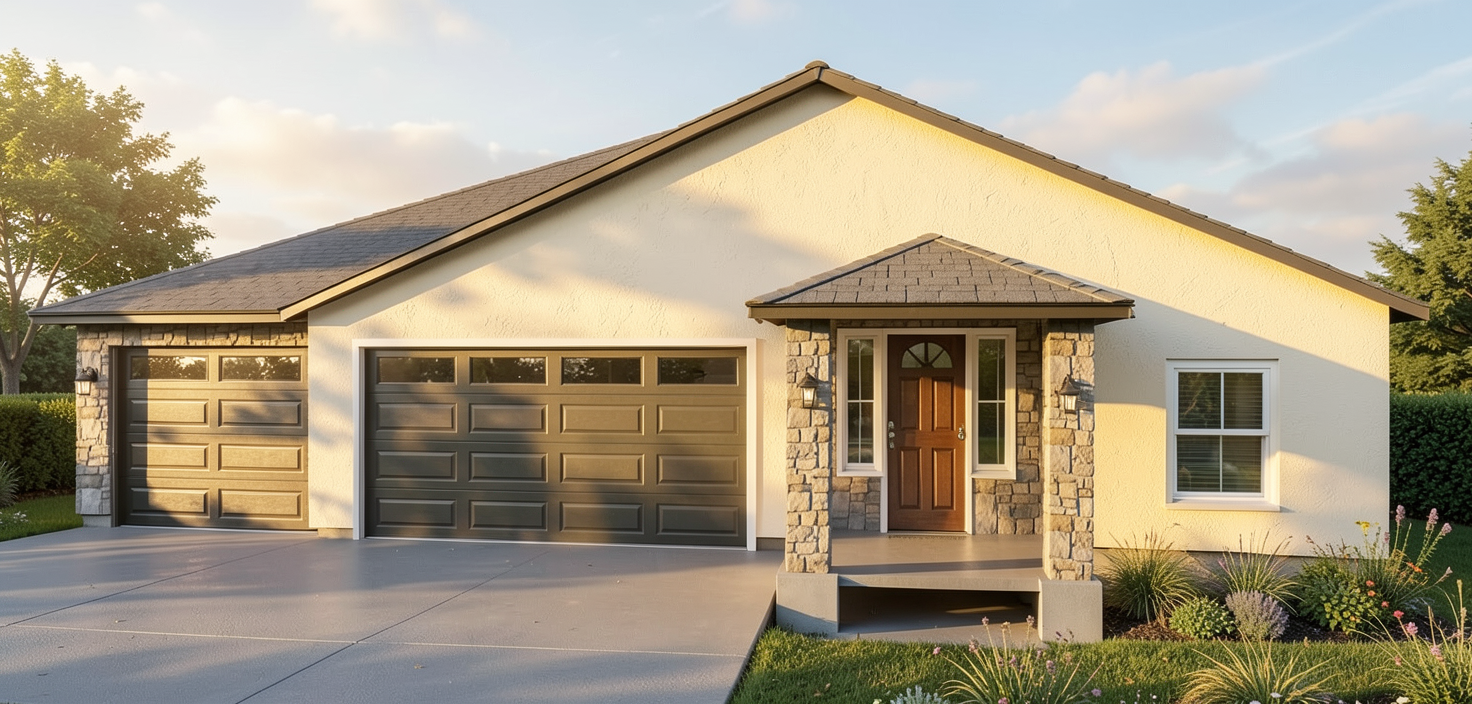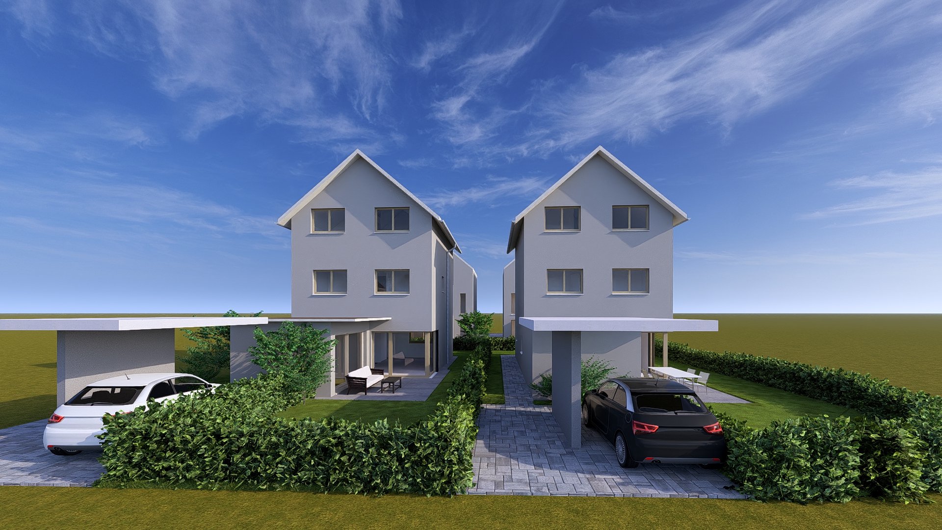 create a highly photorealistic architectural visualization with warm daylight