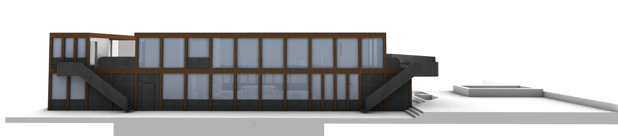 a beautifully detailed architectural facade in the style of mies van der rohe design elements a flat roofline with deep clean overhangs the primary structure is a visible refined dark steel or black metal framework showcasing a clear structural grid like the barcelona pavilion or seagram building infill materials should feature large expanses of floor to ceiling glass and elegant panels of warm rich toned wood e g teak or walnut the wood should be finished in a way that highlights its natural grain and texture the overall feeling should be one of minimalism transparency and exquisite material quality atmosphere context lighting soft natural daylight or early evening golden hour light that casts subtle shadows and emphasizes the texture of the materials setting a refined contemplative setting perhaps with a simple water feature or a few carefully placed low maintenance architectural plants like structured bushes or tall grasses vibe calm sophisticated and inviting the nice factor