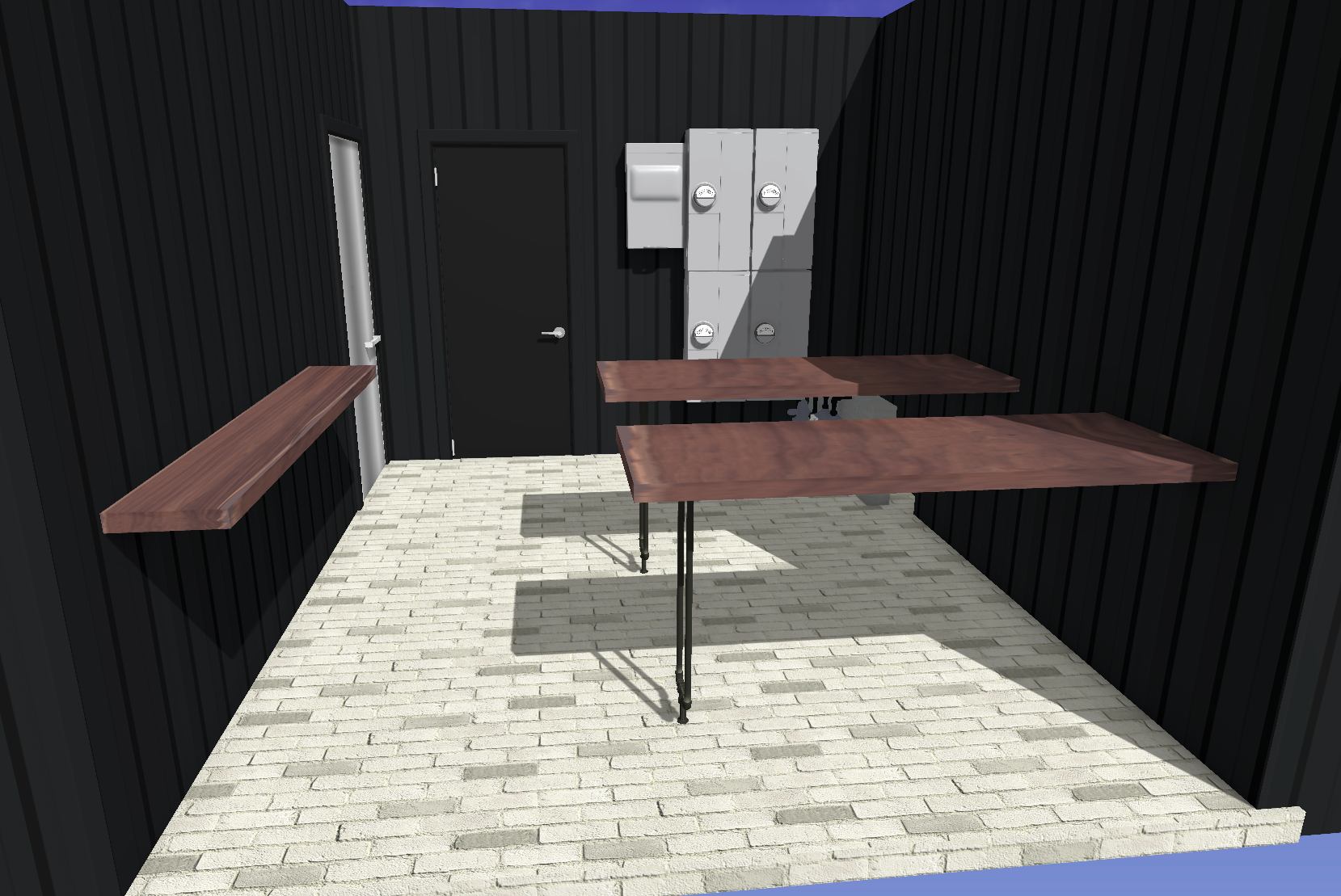 realistic add basic porthole to black slab door add black angle brackets to the floating shelf