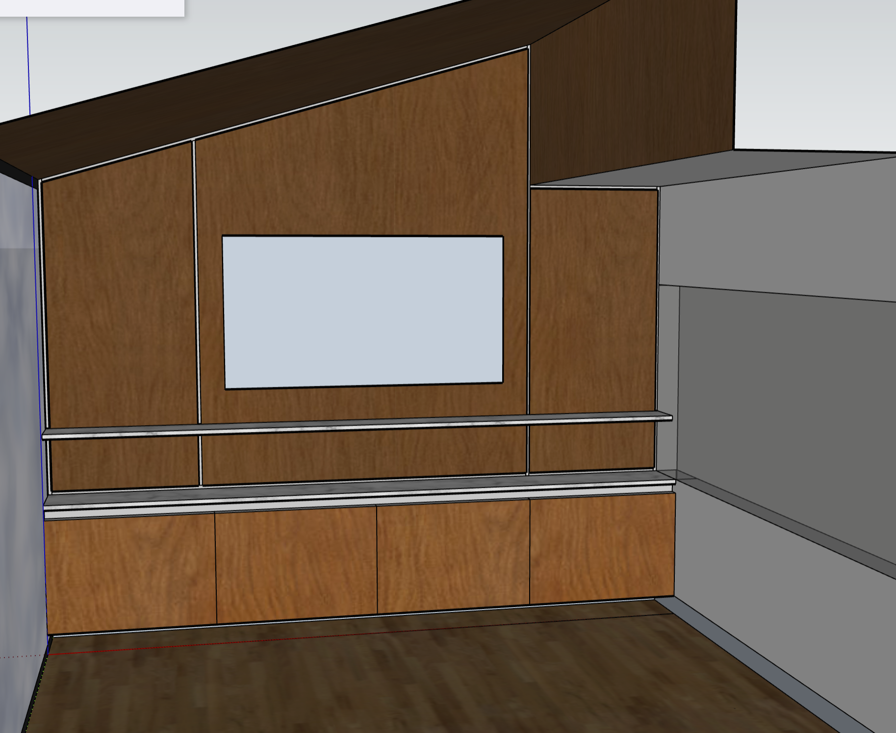 make this look realistic the back wall should be oak and the marble should be calcatta the art should be white abstract the flooring should be an oak laminate wide plank as well