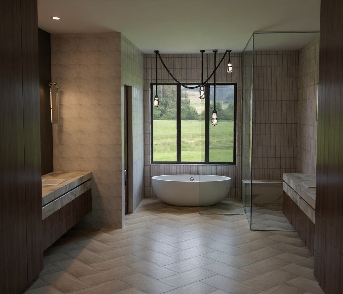 photo realistic with grey bricks to walls below windows horizontal white weatherboards black window frames and black metal roof architecture