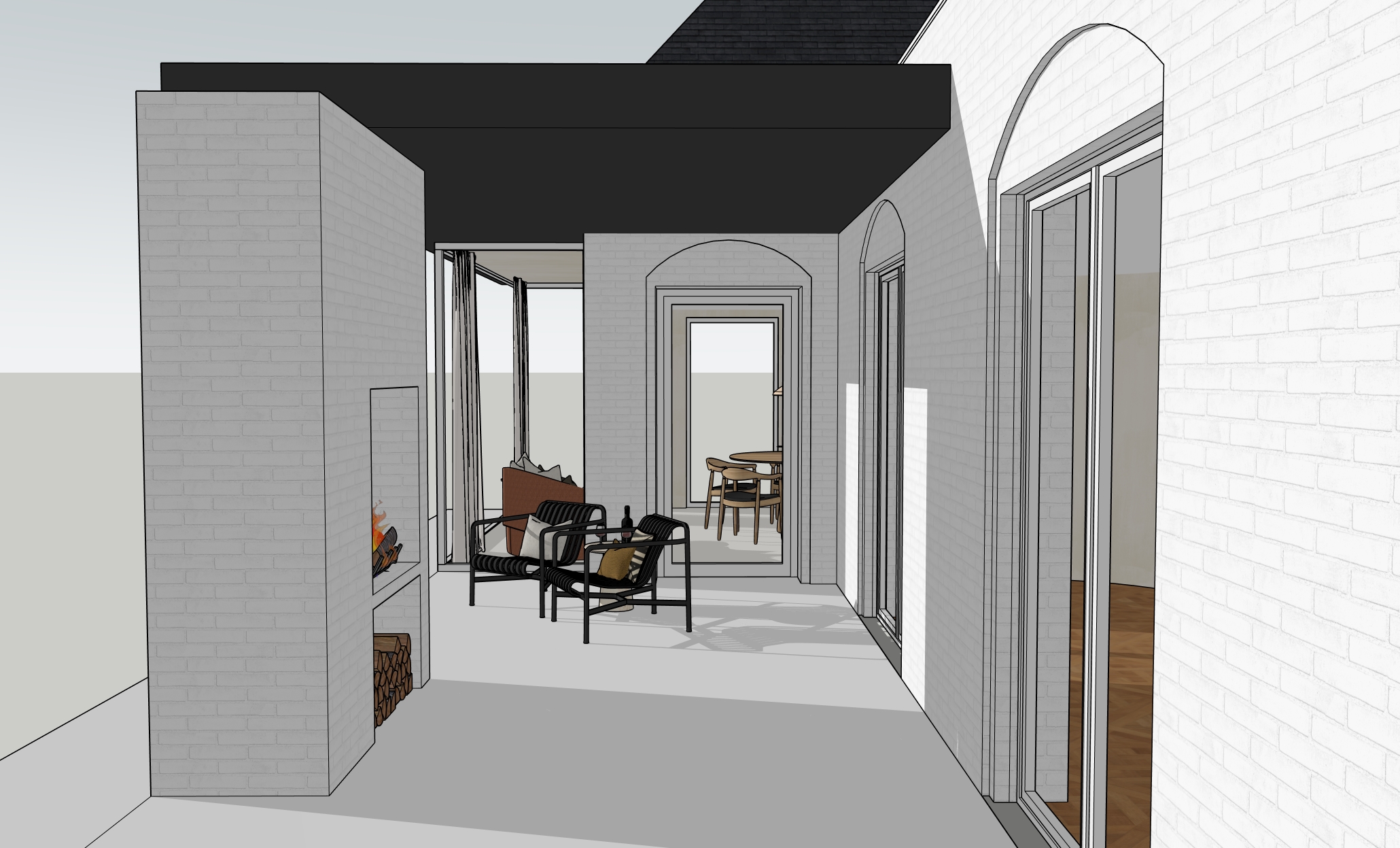 highly realistic architectural rendering of a residential building the background features an organic park like garden with many mature trees and natural greenery the windows are frames finished in white lacquer preserve all existing materials proportions and the original architectural composition allow warm natural sunlight to beautifully enter and illuminate the scene creating soft light and realistic shadows contemporary style high realism