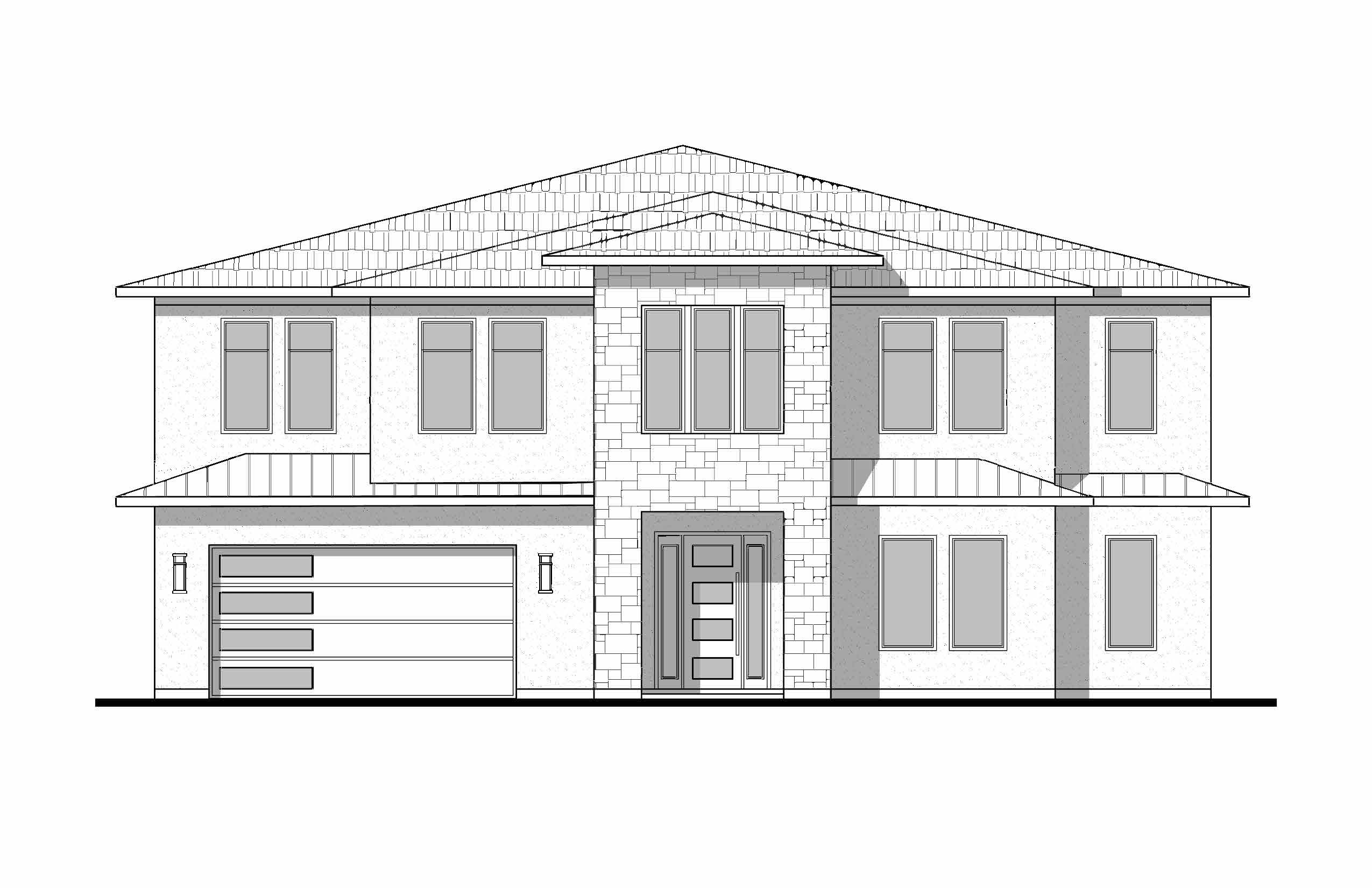 contemporary exterior shot limestone dark brown roof shot from curb suburban landscape architecture