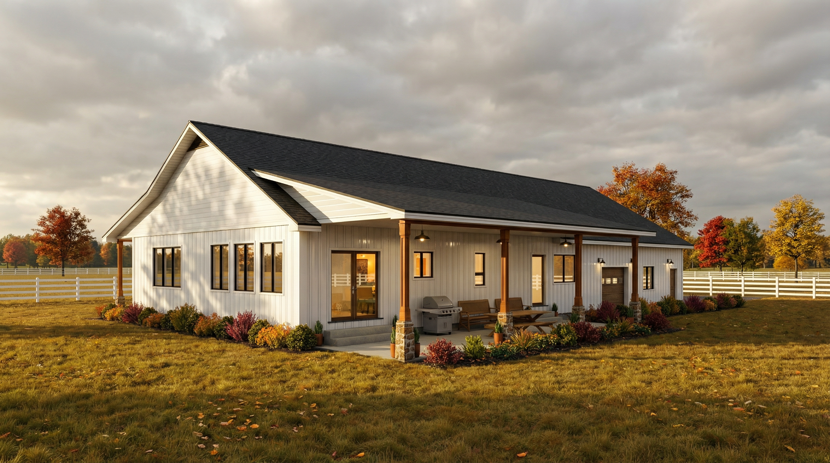 realistic gray brown siding and dark brown trim bright day light wooden fence