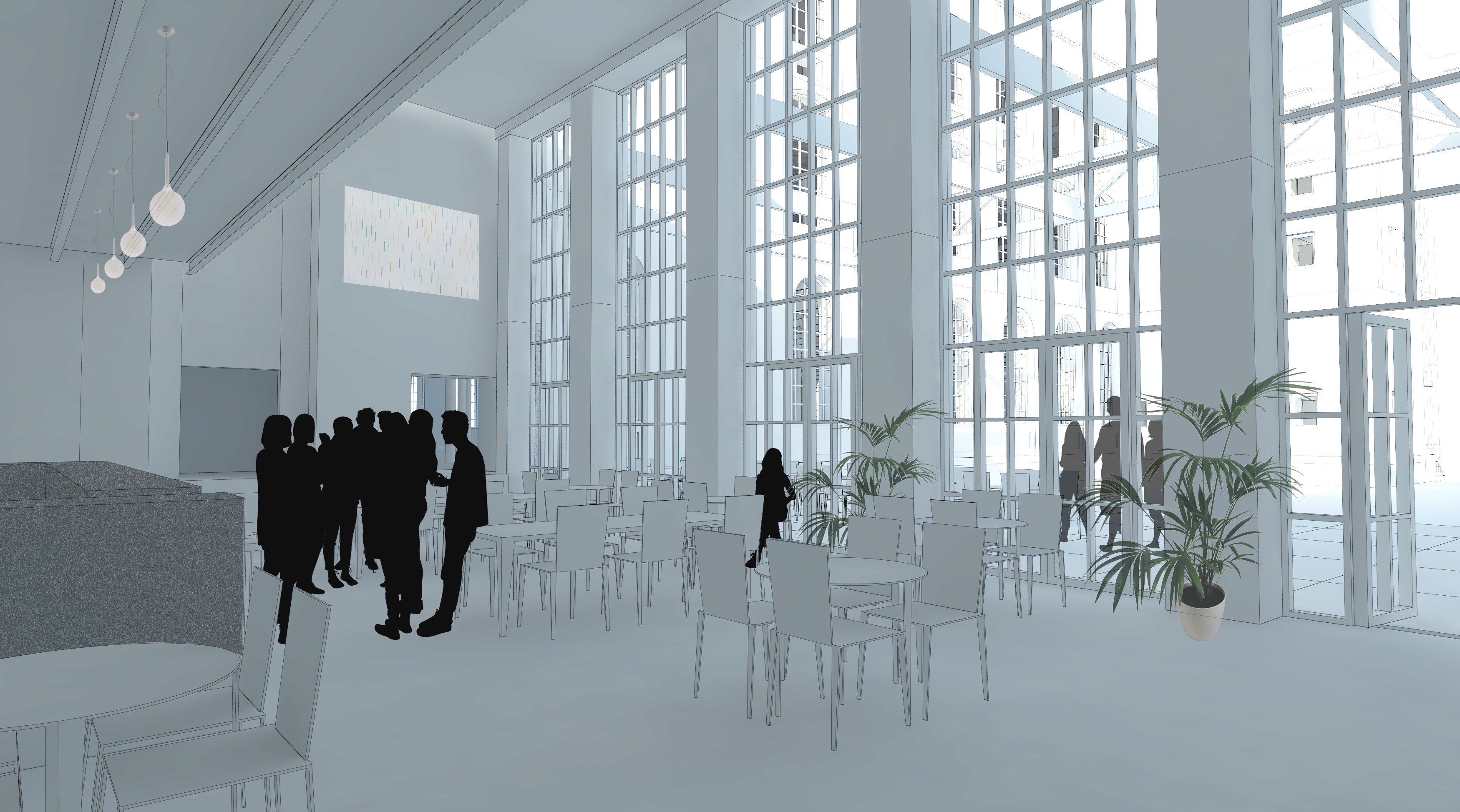 its entrance hall to the cultural centre in old brick factory floor is concrete walls are made by concrete and bricks visitors and coffeteria