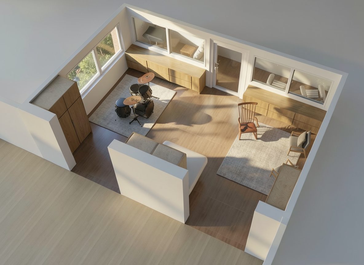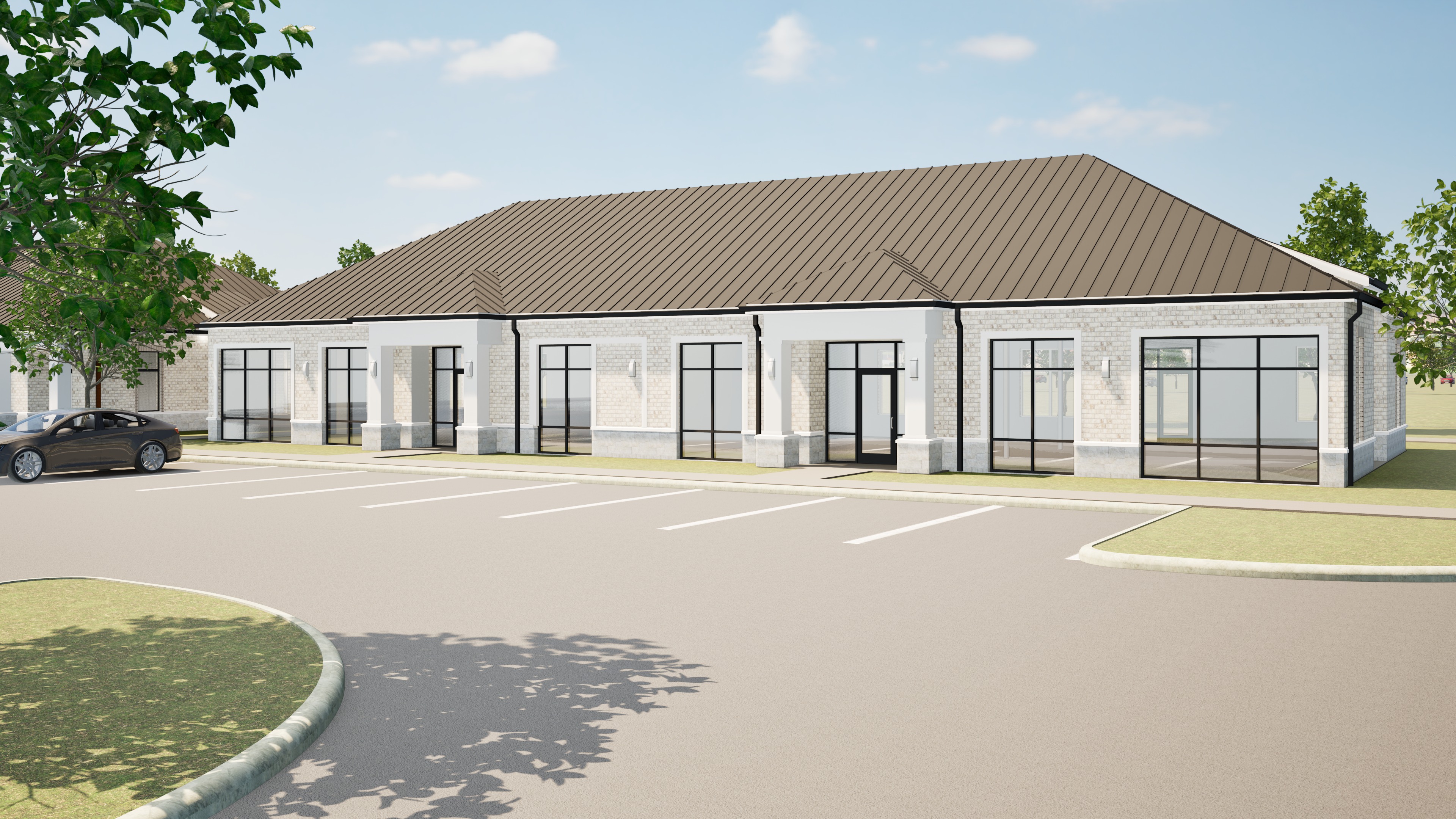 enhance the current materials and create a photorealistic atmospheric depth render the scene in hyper realistic architectural quality enriching the environment and highly detailed textures bright sunny day with balanced natural lighting clear visibility and soft shadows ideal for high end for architectural rendering the roof is brown gray