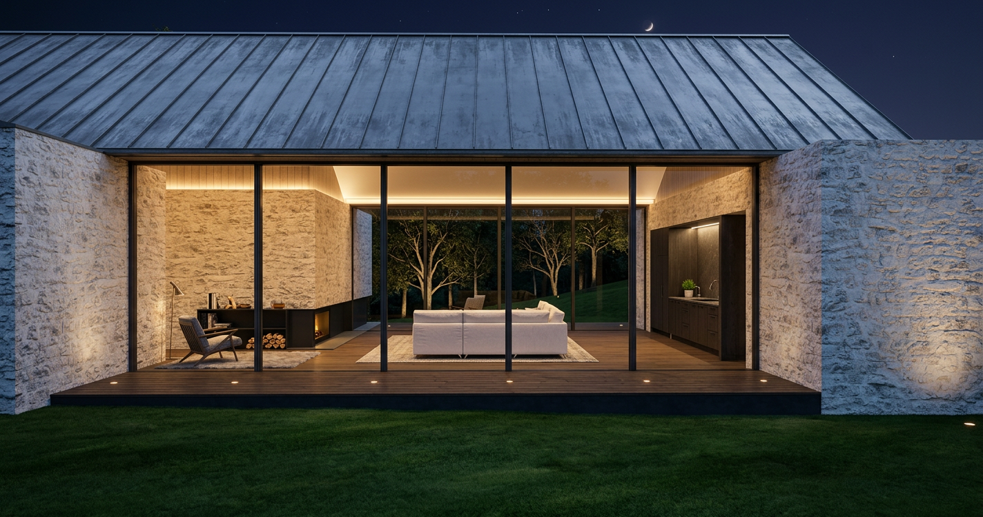 set in blue ridge mountain setting with long range views show japanese style landscaping in green areas