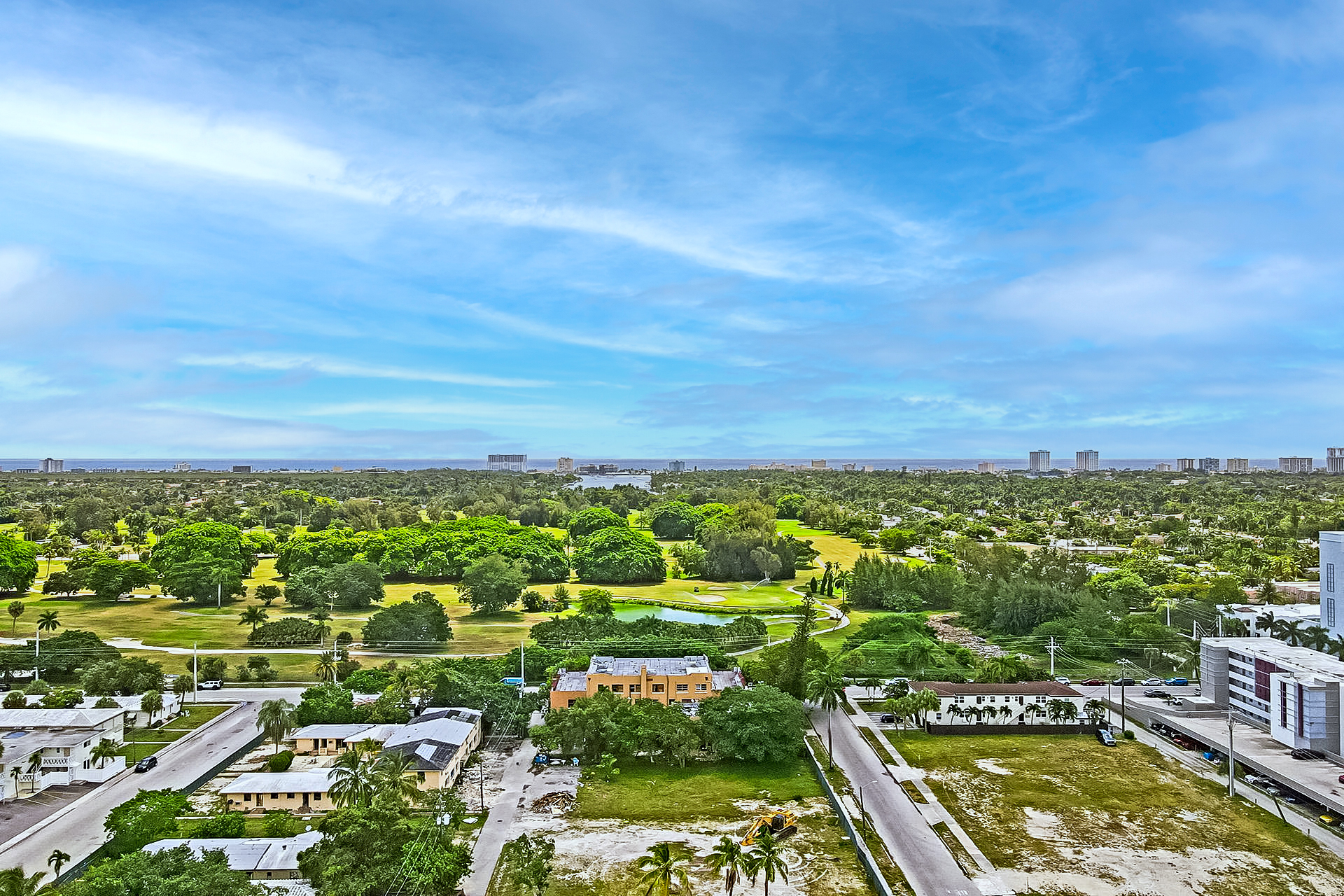 do it again from the original image do not change the sky please cut the bottom part of the image starting at the golf course at the far end of the image where you can see the horizon and the ocean please make the ocean appear closer to the viewer