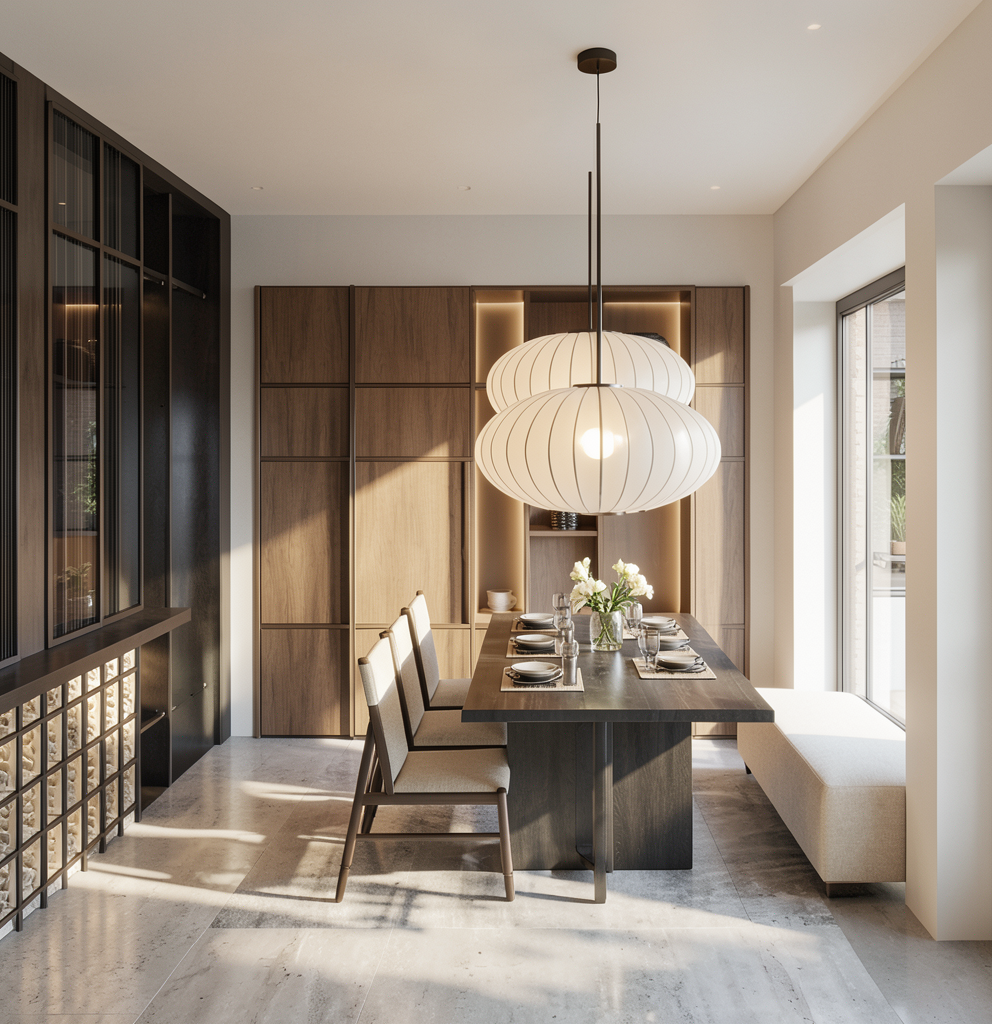 maak een fotorealitische render door het glas geen uitzicht op een binnentuin in het centrum van een stad