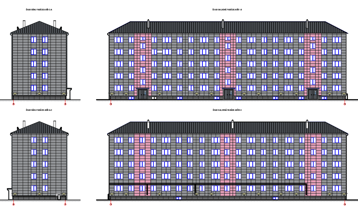 without led lights red and dark gray accent small lights at the bottom a darker shade of gray more pronounced contours for dividing the facades lights in each corner darker facades background lighter facade darker lights more expressive the red facade should show the division of the contours